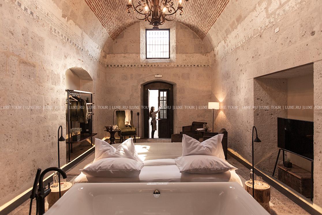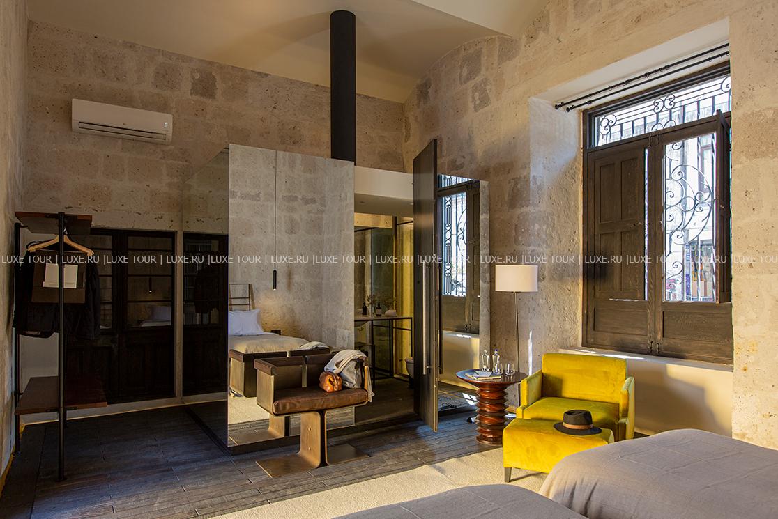 Cirqa, Арекипа находится в монастыре, основанном в 1540 году и расположенном в историческом центре, который внесен в список Всемирного наследия ЮНЕСКО. В небольшом отеле всего 11 номеров и каждый из них воссоздает атмосферу средневекового монастыря и интерьеры колониальной эпохи: мощные стены, арки и колонны из вулканического камня, изящная резная мебель и великолепные люстры. Cirqa, Арекипа сочетает современный сервис и уникальное исторической наследие Белого города