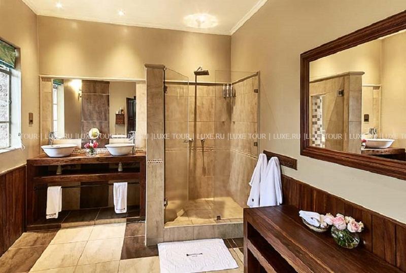 - В уютном обеденном зале, в окна которого заглядывают жирафы, и на террасе с видом на лес подают завтрак, послеобеденный чай, а также изысканные блюда европейской и местной кухни.