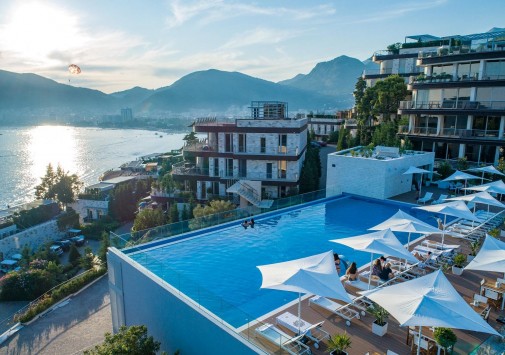 - В ресторане у бассейна в Infinity Pool Club можно насладиться превосходной кухней, любуясь потрясающим видом на Будванскую Ривьеру и остров Св.Николая.