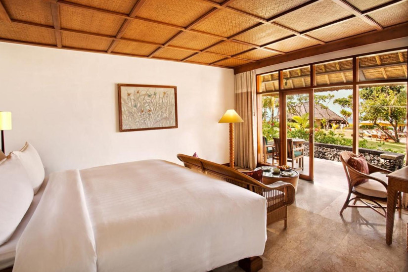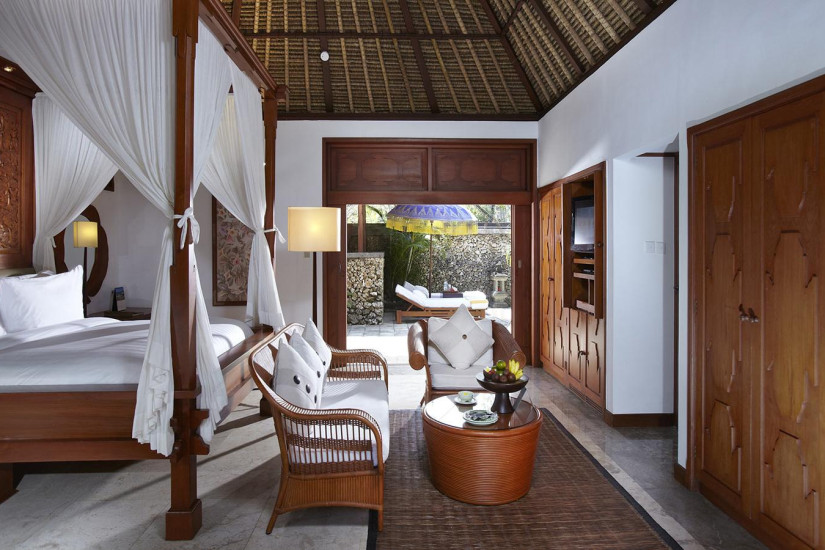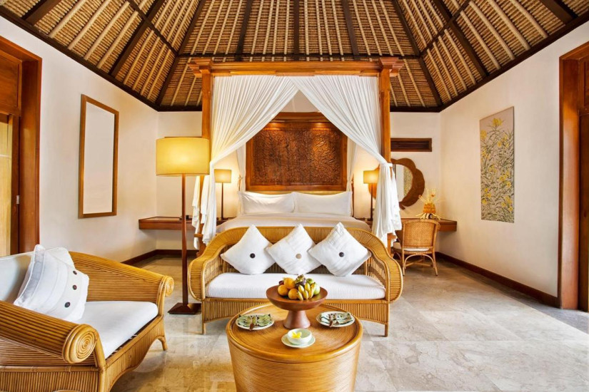 - В отеле 74 комфортабельных вилл и коттеджей, различных категорий, включая Luxury Lanai Ocean/Garden View, Luxury Villa Ocean/Garden View, Luxury Villa with Pool Garden View, Villa with Pool Ocean View, Royal Villa Hibiscus with Pool. Все здания выполнены в традициях острова Бали, с соломенными крышами и стенами, отделанными коралловыми породами. В номерах – элегантные интерьеры с отделкой и мебелью из тикового дерева, украшенные искусной резьбой по дереву, произведениями искусства местных мастеров и артефактами острова Бали.