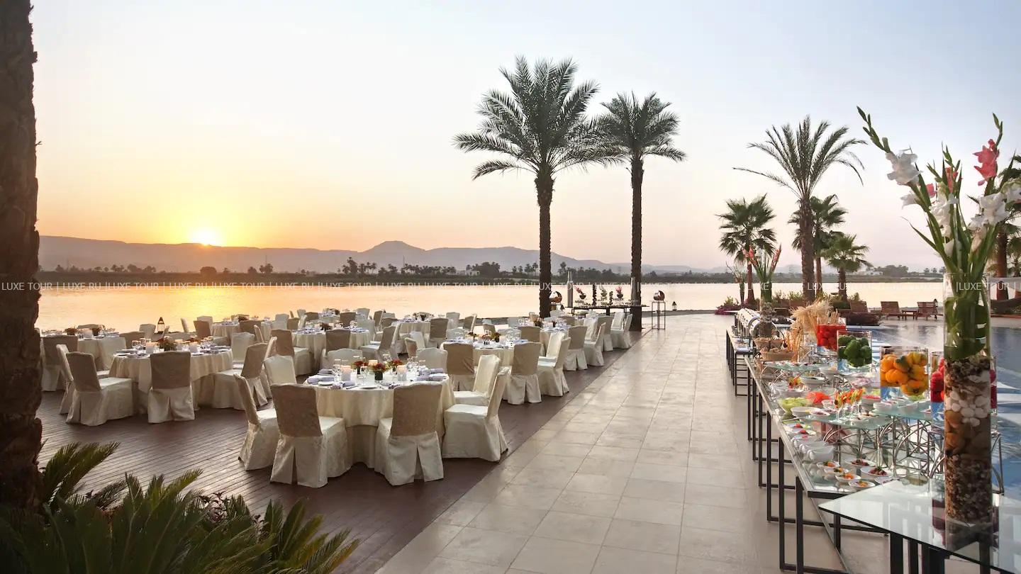 - Очаровательный ресторан Olives с видом на Нил и бассейн специализируется на средиземноморской и египетской кухне.