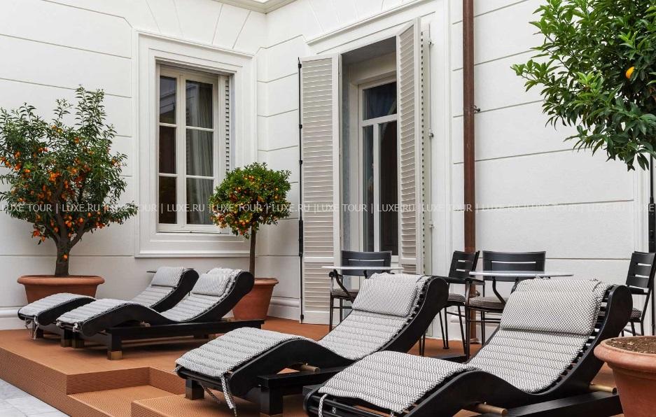 Отель располагает Spa-центром с крытым подогреваемым бассейном, сауной, хамммом, ледяным душем, массажным кабинетом и террасой-солярием.