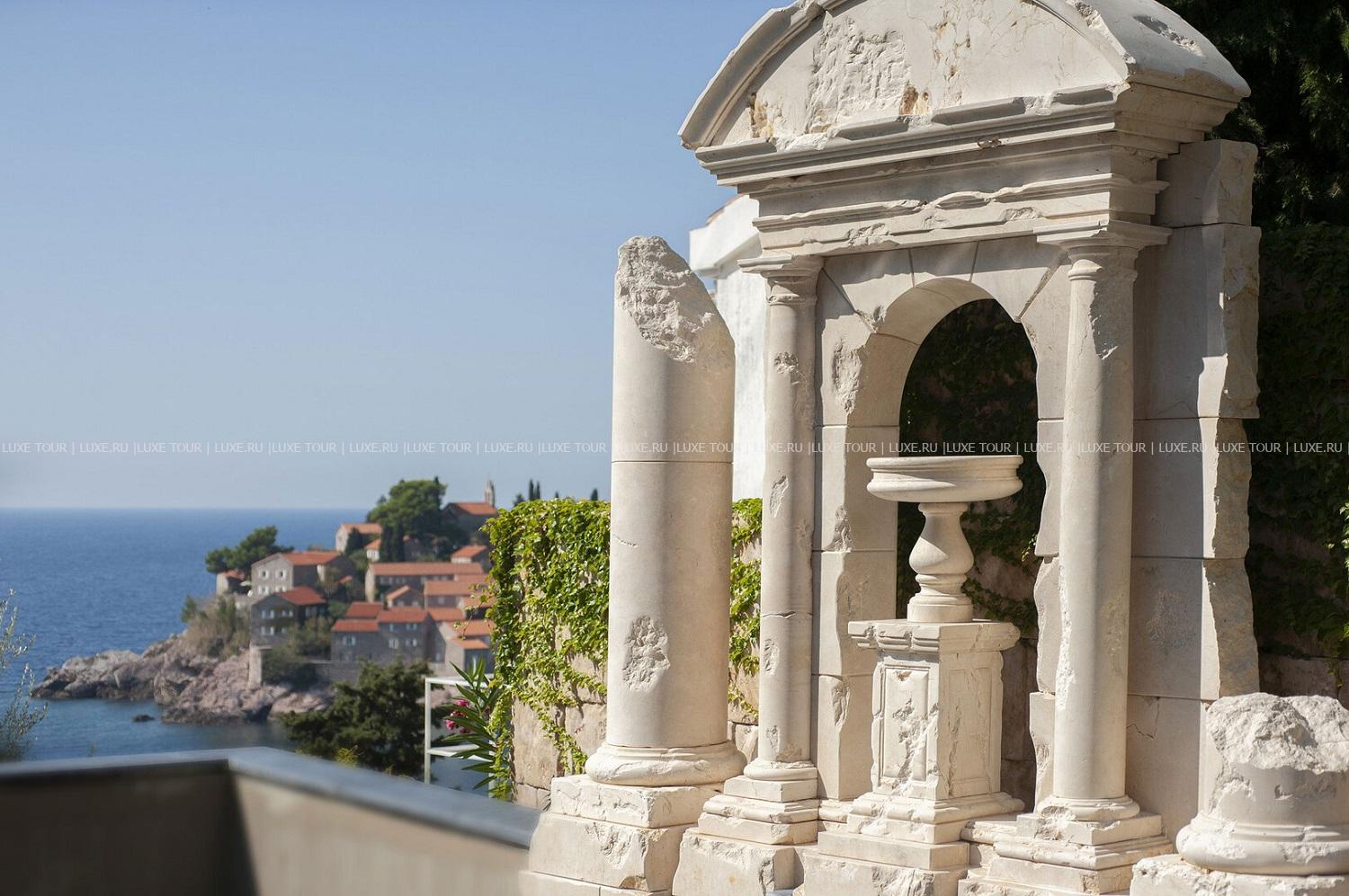 Отель располагает открытым подогреваемым бассейном с панорамным видом на море и остров Свети-Стефан.