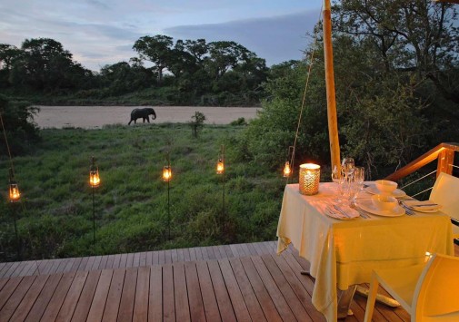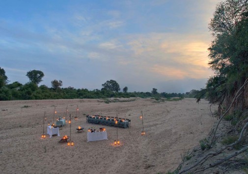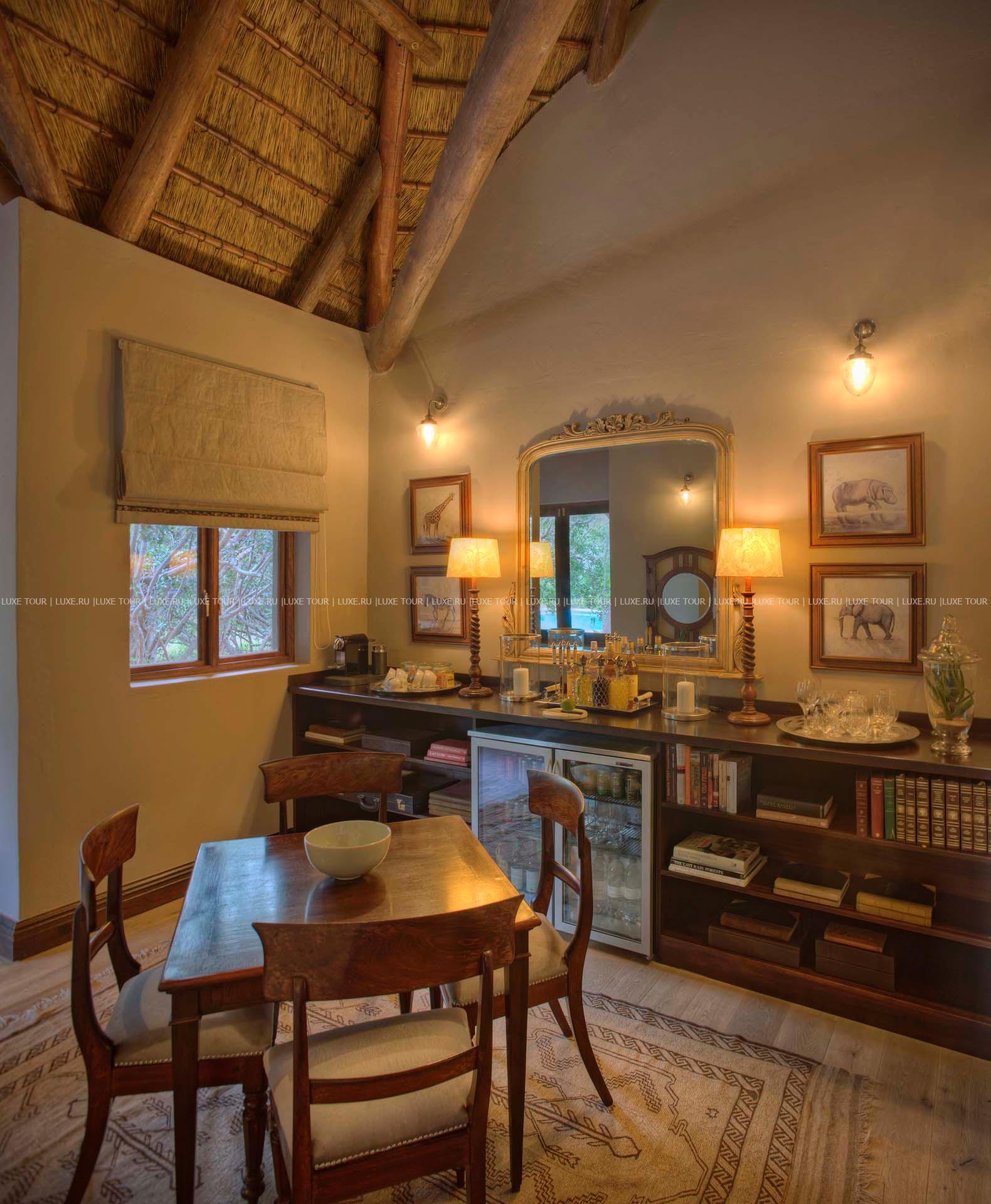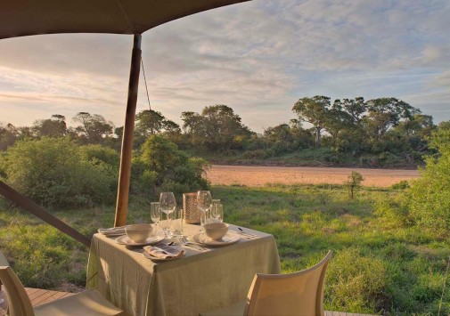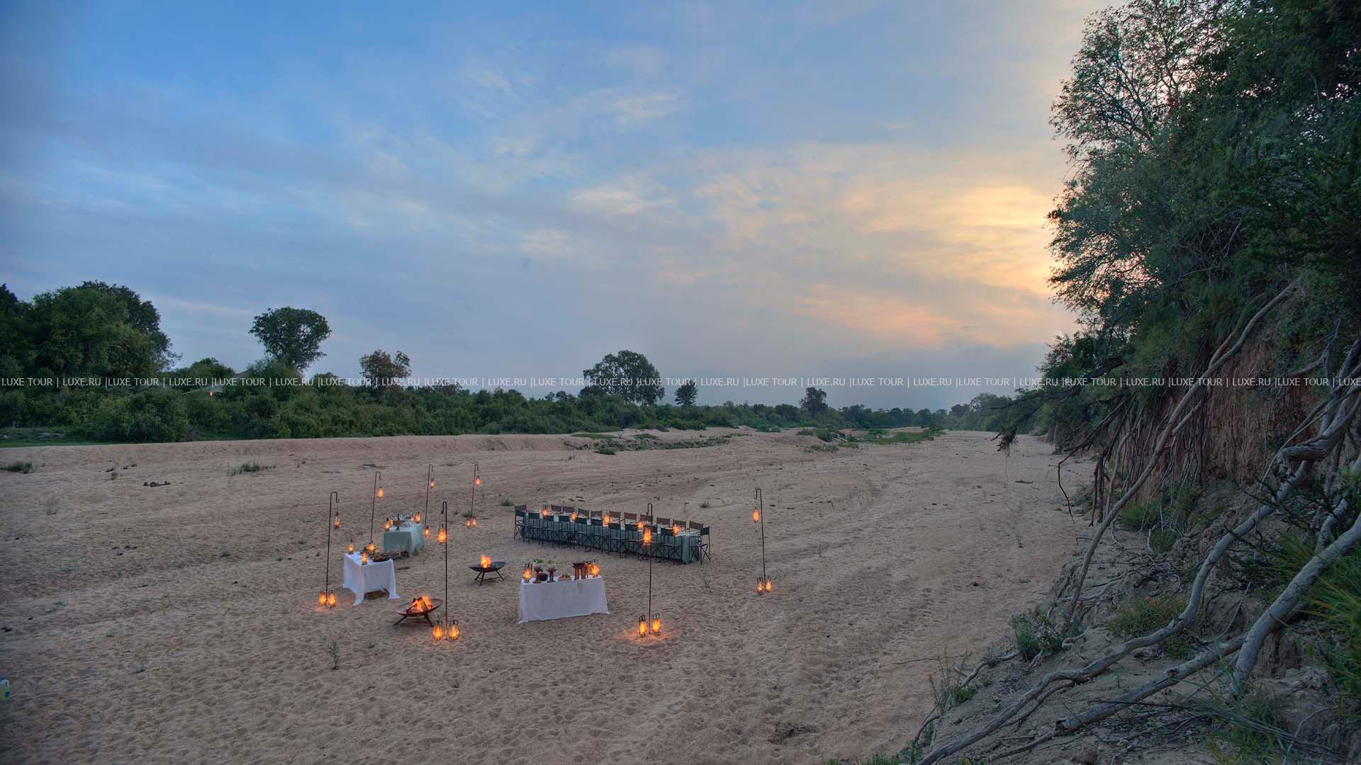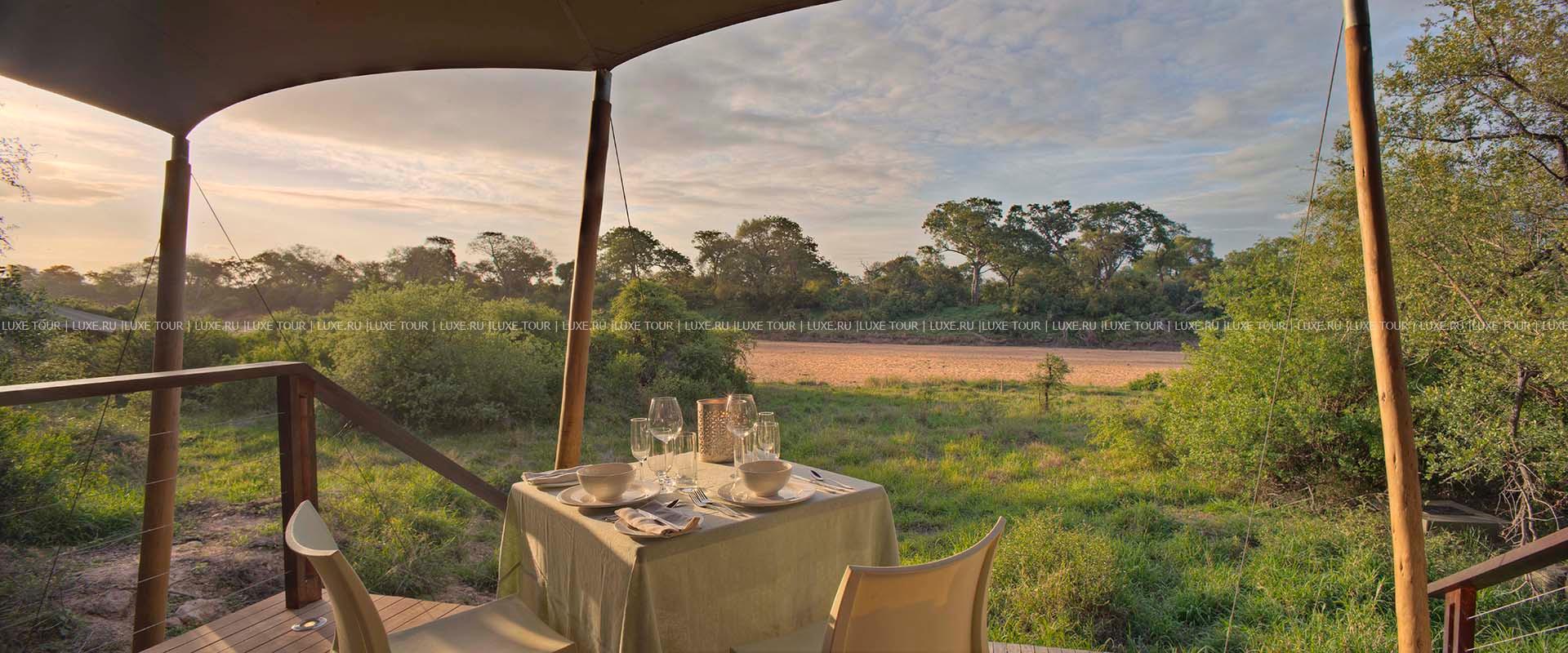 К услугам гостей мини-ресторан, где сервируют блюда местной южноафриканской и европейской кухни. Ужин накрывается под открытым небом в высохшем русле реки Тимбавати. Для гостей лагеря устраиваются пикники в степи-буше. В небольшом открытом дворике «бома», оформленном в традиционном африканском стиле, готовят пищу на открытом огне. Здесь также устраиваются вечерние ужины вокруг костра. В отеле-лагере есть свой бар на берегу реки. Можно провести вечер в небольшой крытой тентом гостиной, украшенной мебелью и различными подлинными вещицами 1950-1970-х годов.