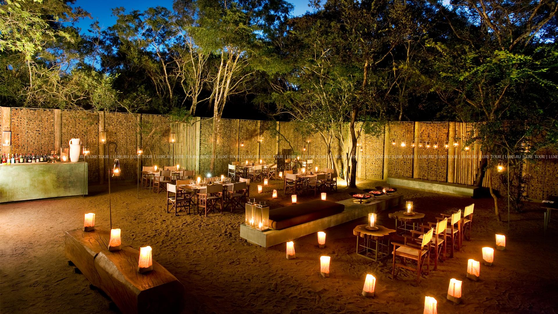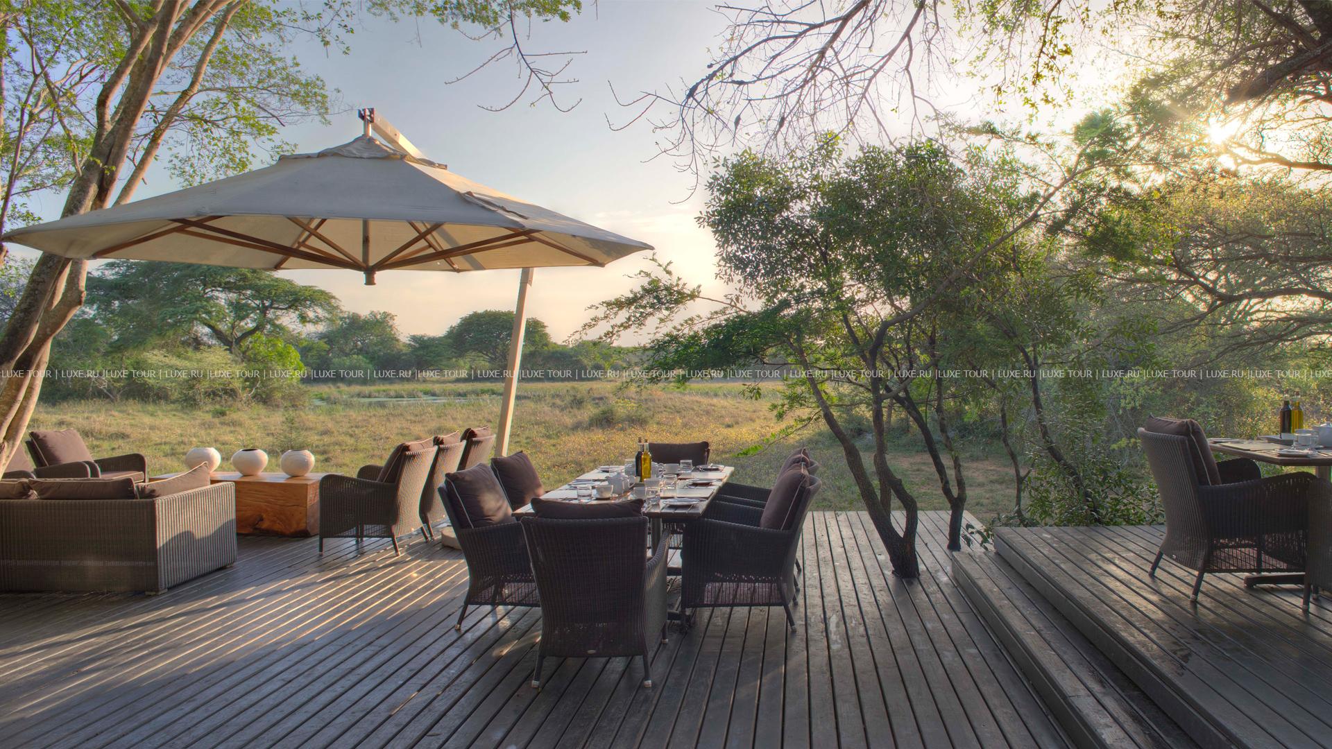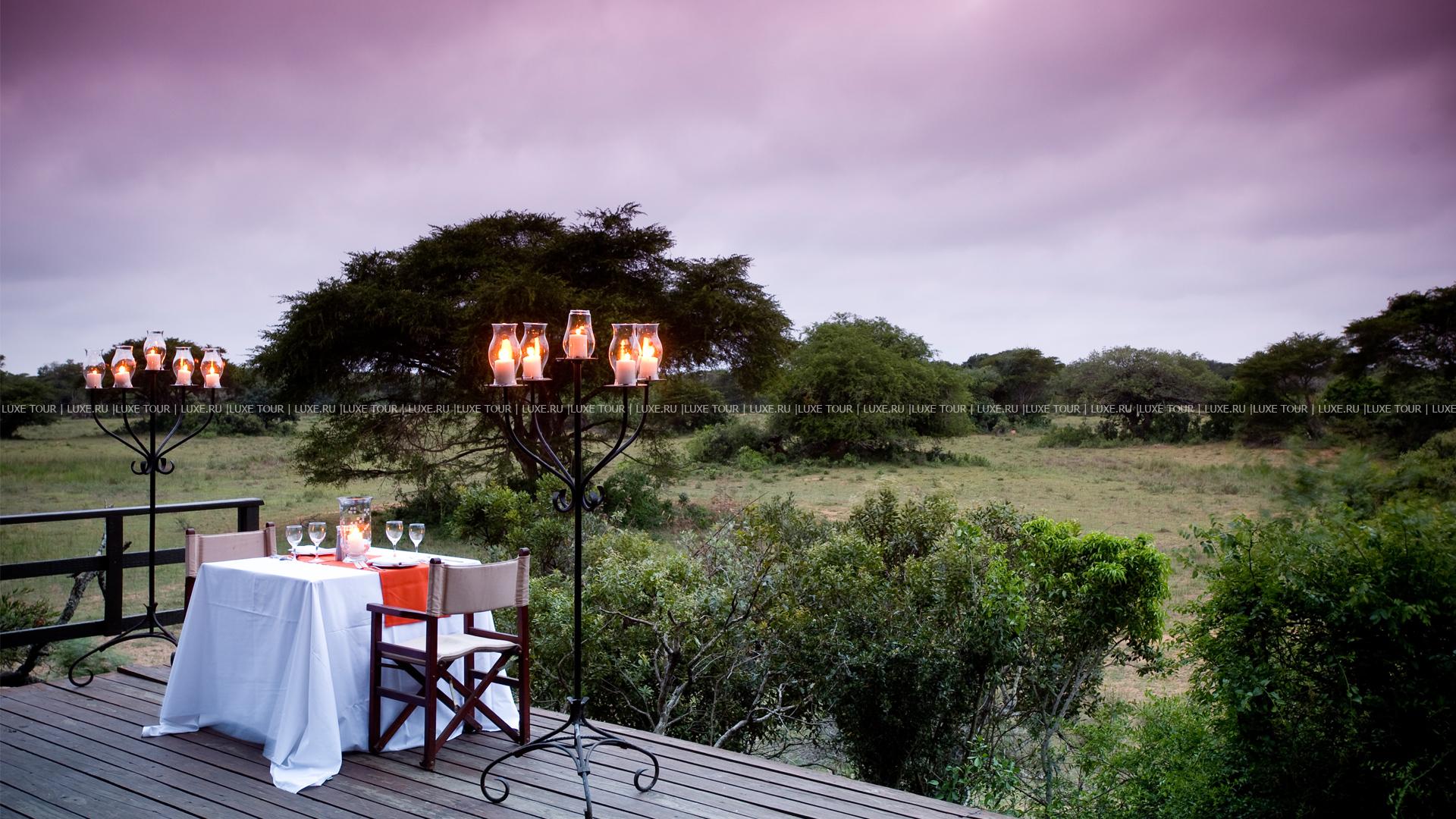 К услугам гостей ресторан Phinda Forest Lodge. Здесь подают блюда европейской и местной южноафриканской кухни. Завтраки и обеды сервируются на открытой террасе. Ужины – зачастую на открытом воздухе, в оформленном под африканский дворике для принятия пищи – «бома». Запомнится вечер при свечах, рядом с горящим очагом (или костром), когда из большого чана или с раскаленной на огне решетки подают тут же приготовленные деликатесы из самых экзотических животных. Работает также бар рядом с бассейном.