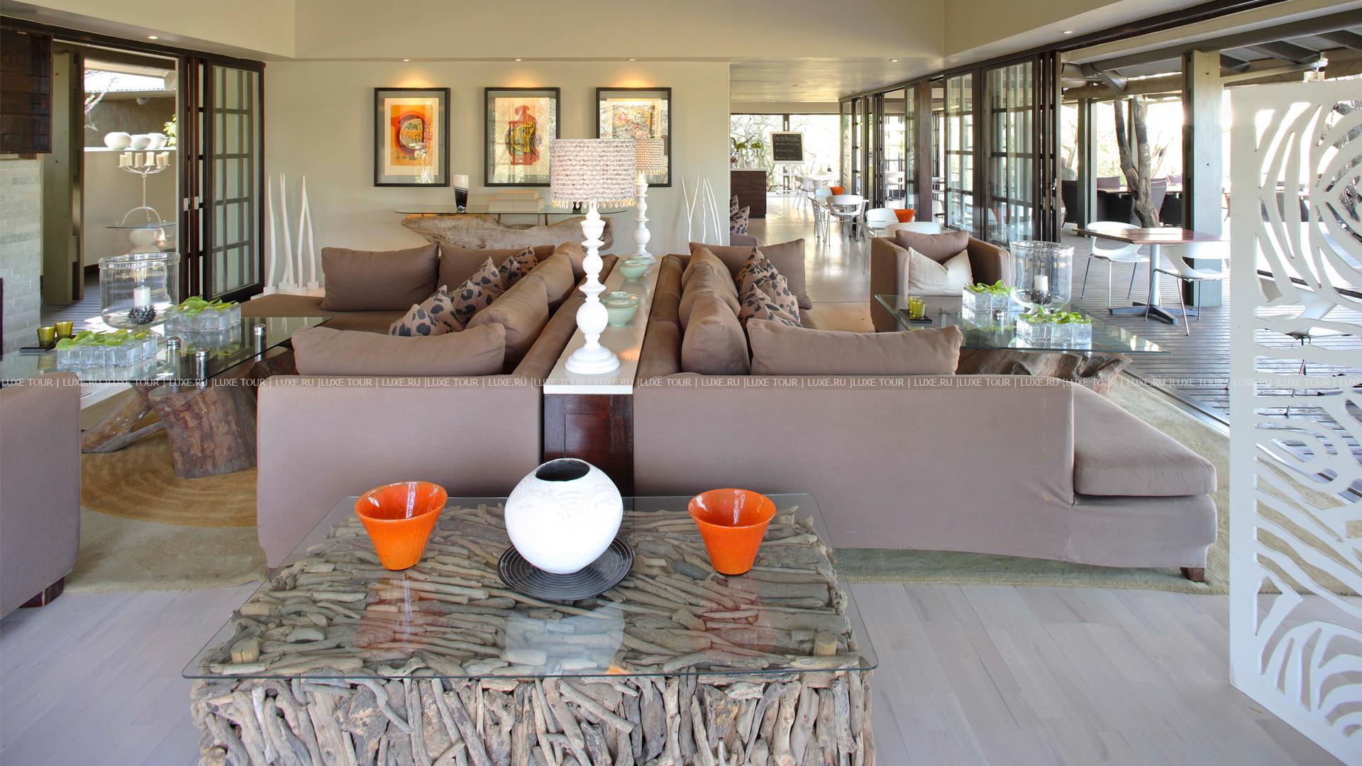 Для проведения приемов и встреч предусмотрен конференц-зал, расположенный в соседнем отеле Phinda Moutain Lodge, где можно разместить до 70 гостей, парковка для автомобилей. В большой гостиной есть камин-очаг, открыта выставка-коллекция этнографического искусства Африки.