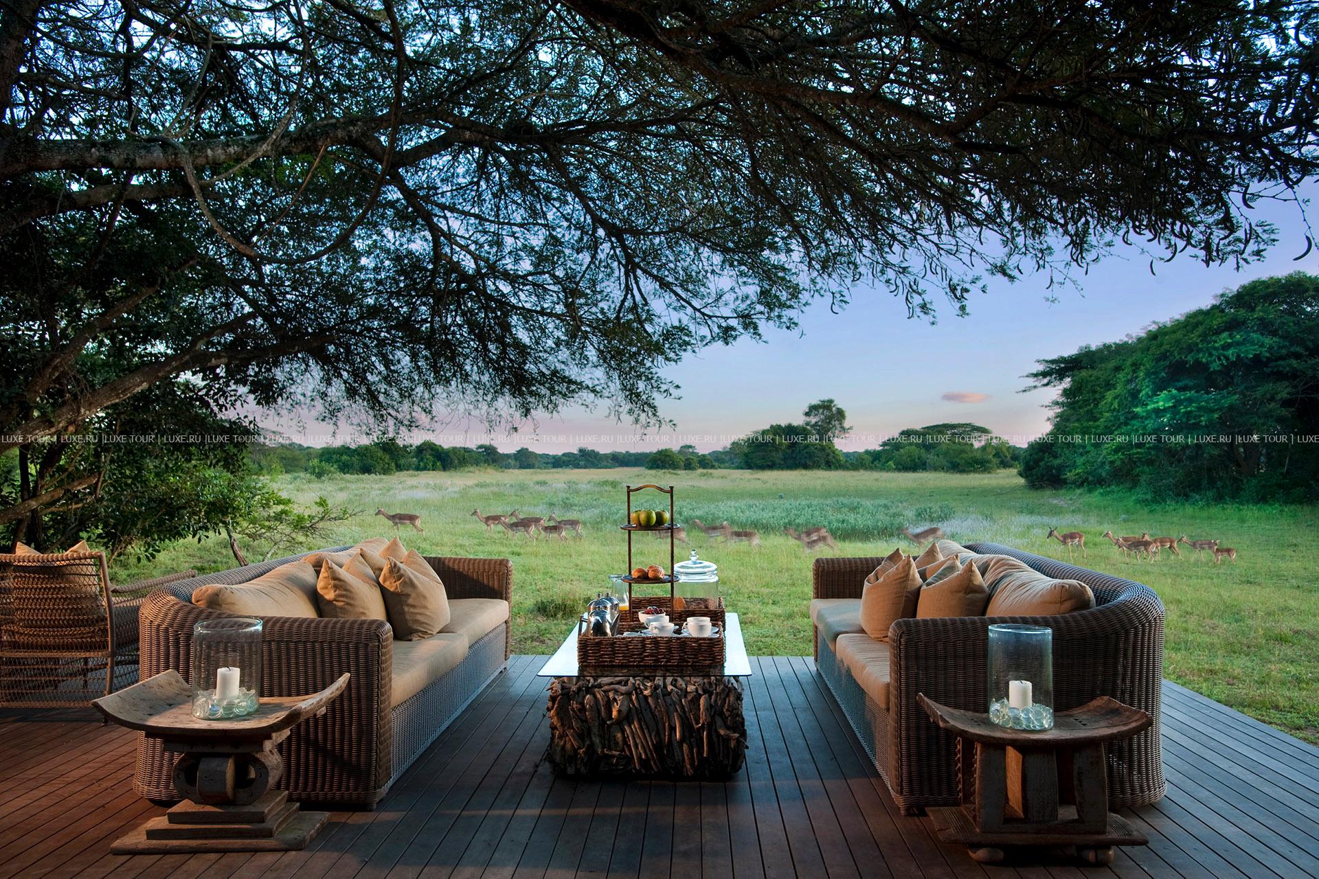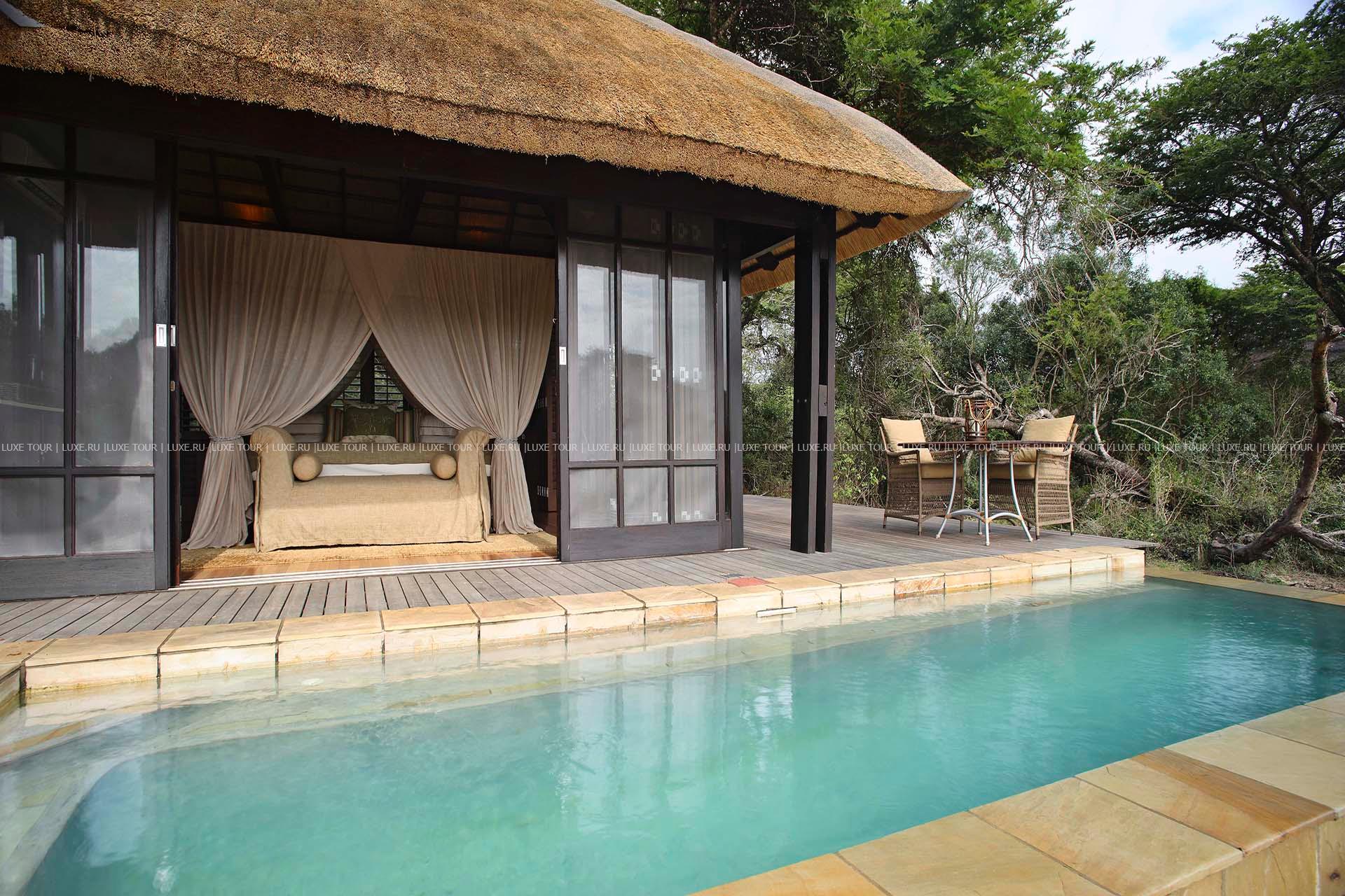 Бассейн у каждого бунгало. Сафари на лендроверах, пешие прогулки, каноэ, рыбалка, верховая езда, дайвинг. Для гостей лоджа устраиваются различные сафари, воздушные прогулки на самолете, круизы по реке Мзинене, экскурсии в зулусскую деревню и на побережье Индийского океана. В этом отеле можно отправиться на специальную прогулку, чтобы посмотреть как живут леопарды, послушать пение птиц, ближе познакомиться с флорой и фауной степи-буш.