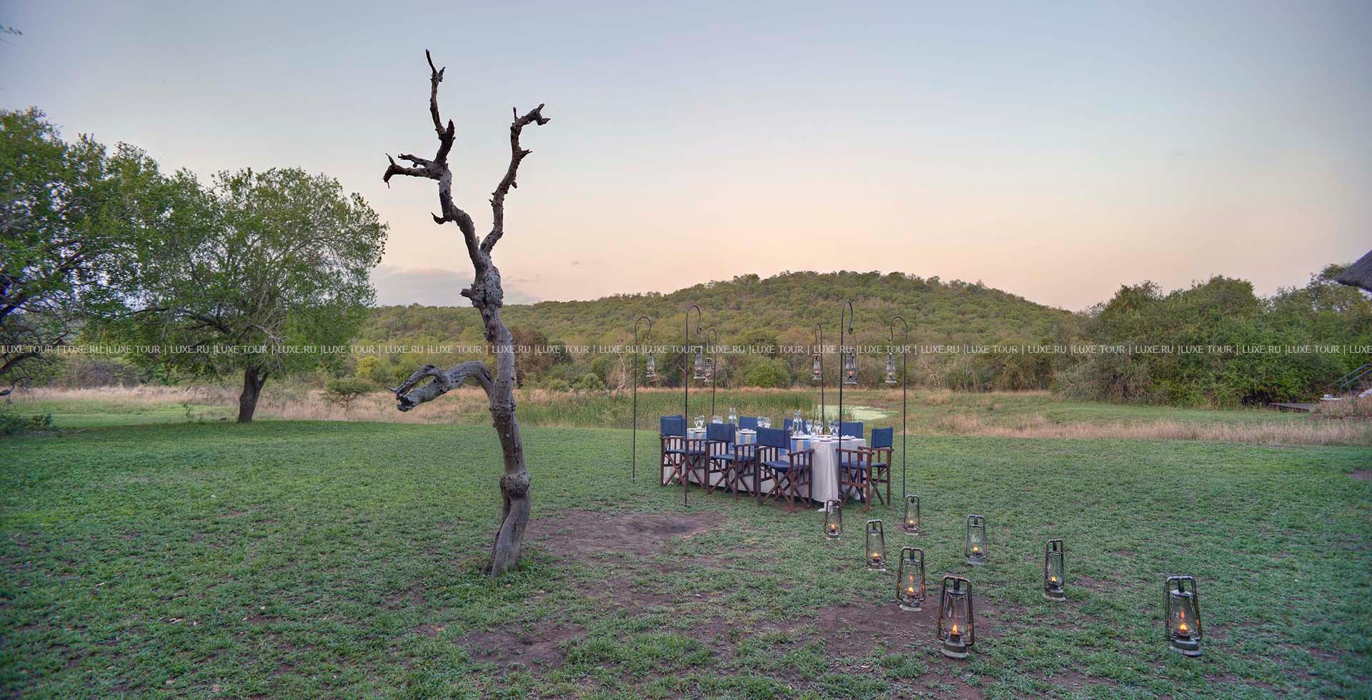 К услугам гостей ресторан европейской и местной южноафриканской кухни. Традиционными стали романтические буш-ужины. Завтраки и обеды сервируются на открытой террасе. Ужины – зачастую на открытом воздухе, в оформленном под африканский дворике для принятия пищи – «бома». Нет ничего более запоминающегося, как вечер при свечах, рядом с горящим очагом (или костром), когда из большого чана или с раскаленной на огне решетки вам подают на ваших глазах приготовленные деликатесы из самых экзотических животных. Работает также бар.