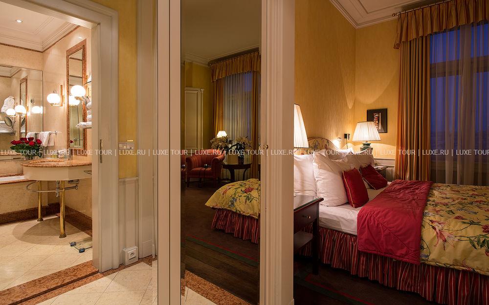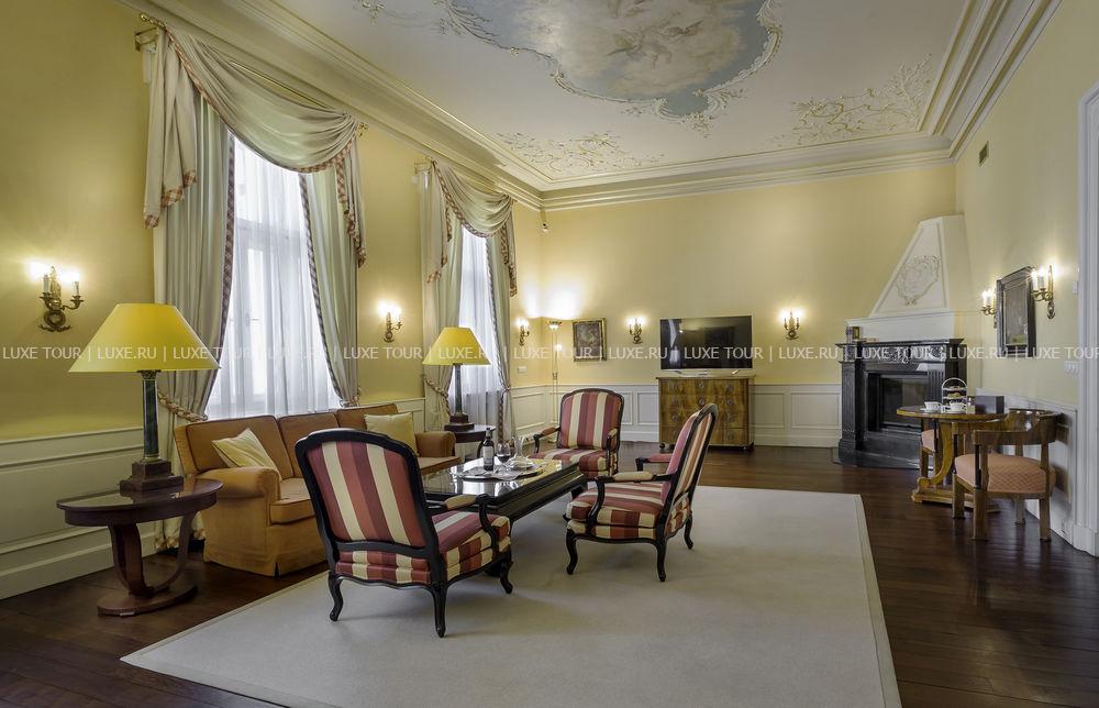 Здание отеля Le Palais внесен в список исторических памятников Праги. Отель гордиться оригинальными фресками, написанными чешским художником Лудеком Маролдом. Отель был построен в 1897 году в стиле Belle Epoque и по первоначальному замыслу должен был использоваться как частный дворец. В 2002 году здание полностью реконструировалось и преобразилось в роскошный пятизвездочный отель с 72 номерами, включая номера Suite.