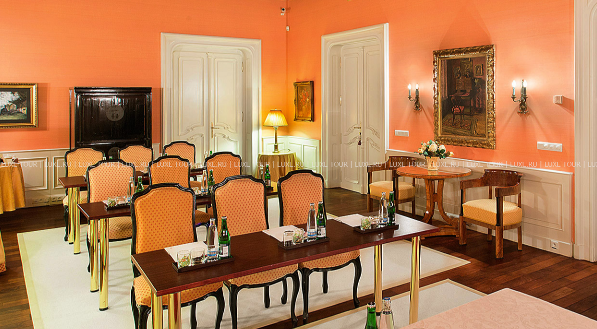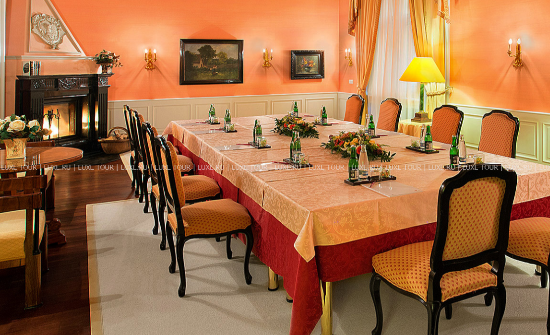 Трансфер, 2 уникальных конференц-зала – зал на 80 персон и изящная библиотека на 22 персоны для частных встреч и обедов.
