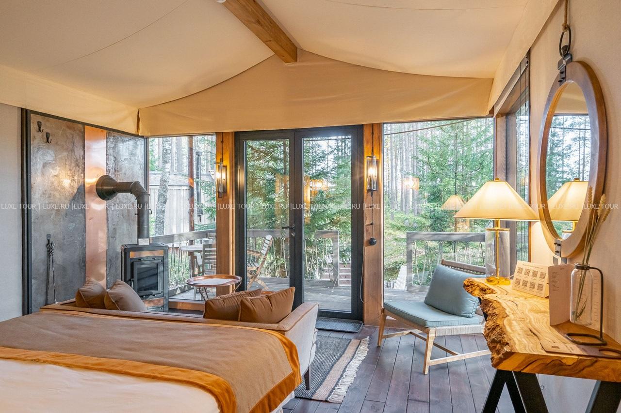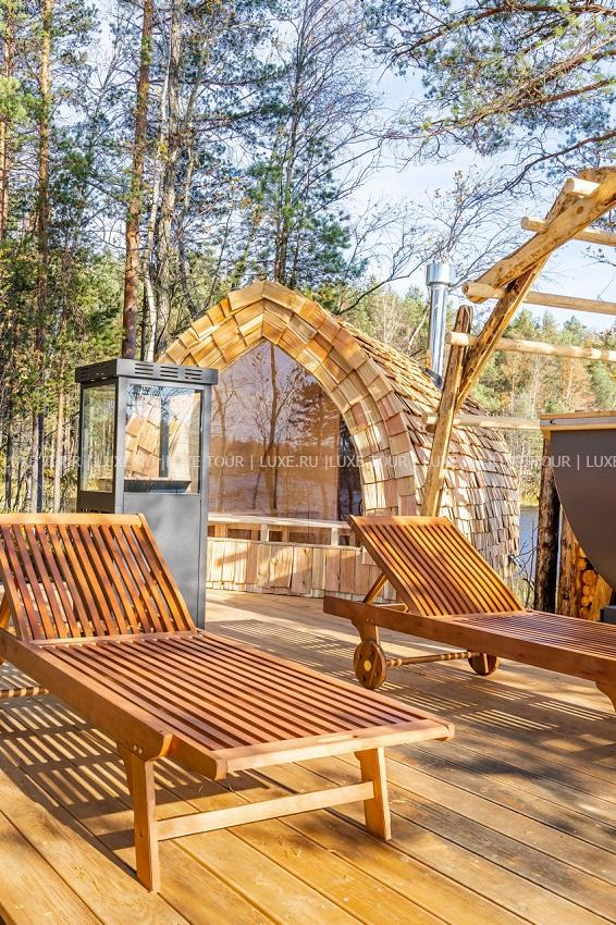 В отеле имеются травяная парная на берегу озера, площадка для занятий йогой и медитацией, тропинки для пеших и велосипедных прогулок, предлагаются прогулки по озеру на лодках, каяках и сапбордах, рыбалка, зимнее катание на снегоходах и квадроциклах, а также экскурсии по лесу с профессиональным экологом.