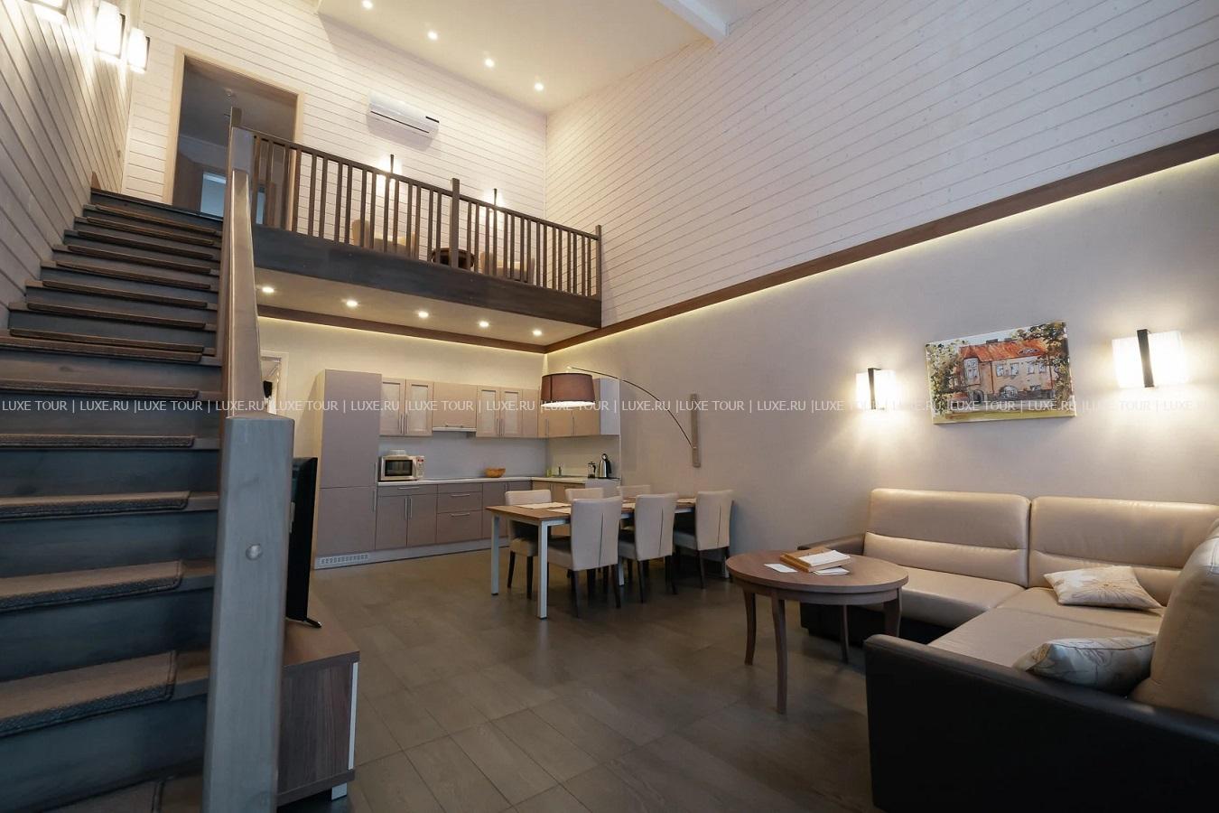 Отель располагает современным банно-оздоровительным комплексом, где имеется: финская сауна (80-90 С), альпийская сауна (50-60 С) с отделкой из сибирского можжевельника, хаммам, терраса с открытой гидромассажной ванной, зона отдыха с панорамным видом на озеро и массажный кабинет. Также круглый год к услугам гостей расположенная на плоту над Ладогой парная с дровяной печью, комнатой отдыха и купелью с озерной водой.