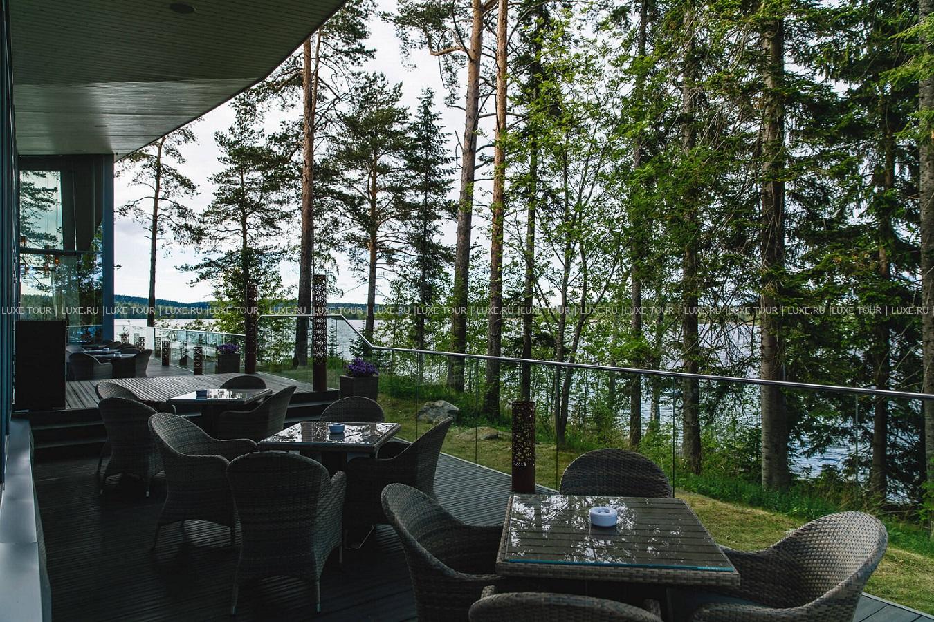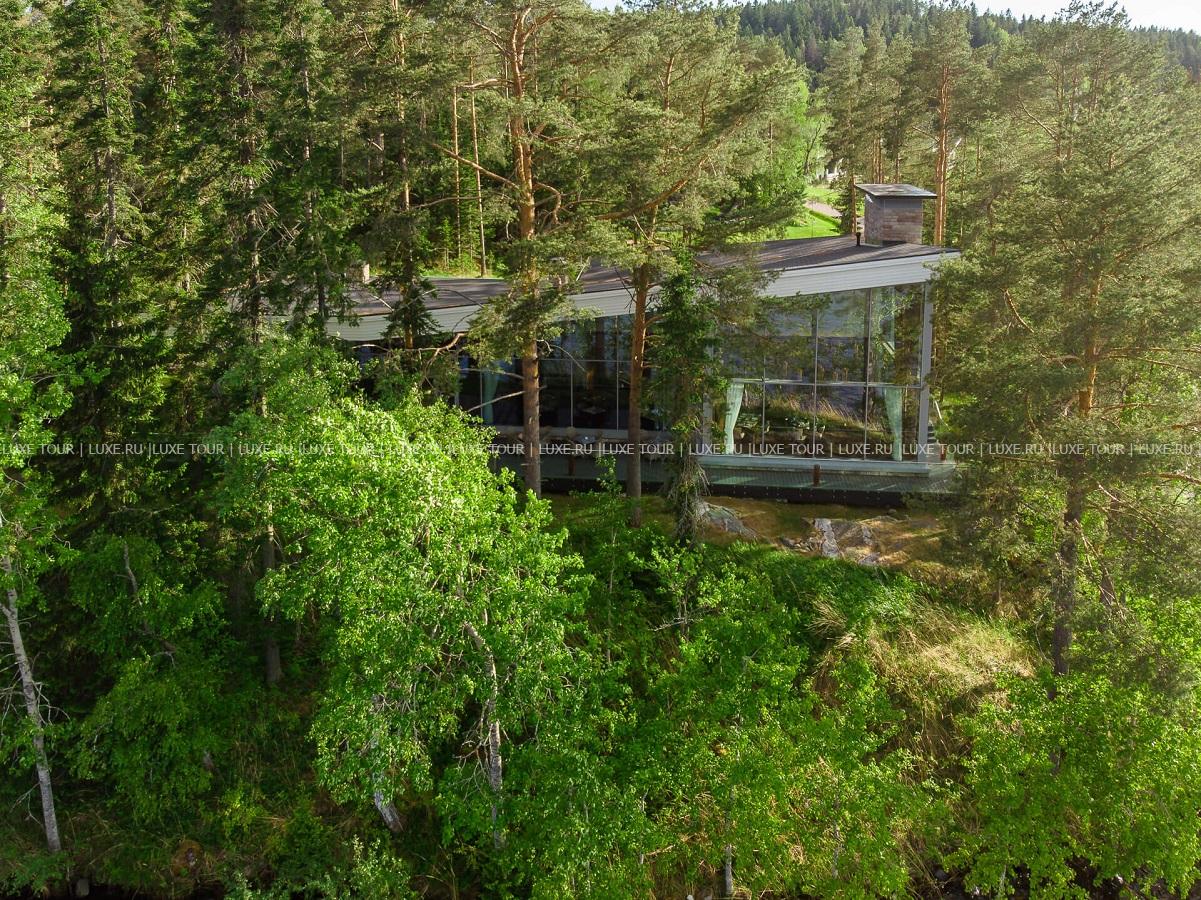 - Стильный ресторан «Густав Винтер» с панорамными окнами, открытой террасой и восхитительным видом на лес и Ладогу представляет деликатесы современной карельской кухни, приготовленные из сезонных местных продуктов, включая озерную рыбу, лесные ягоды и грибы. Вкусные блюда дополняет богатая винная карта, также гости могут самостоятельно или с помощью шеф-повара приготовить барбекю.