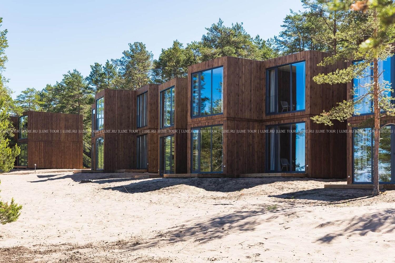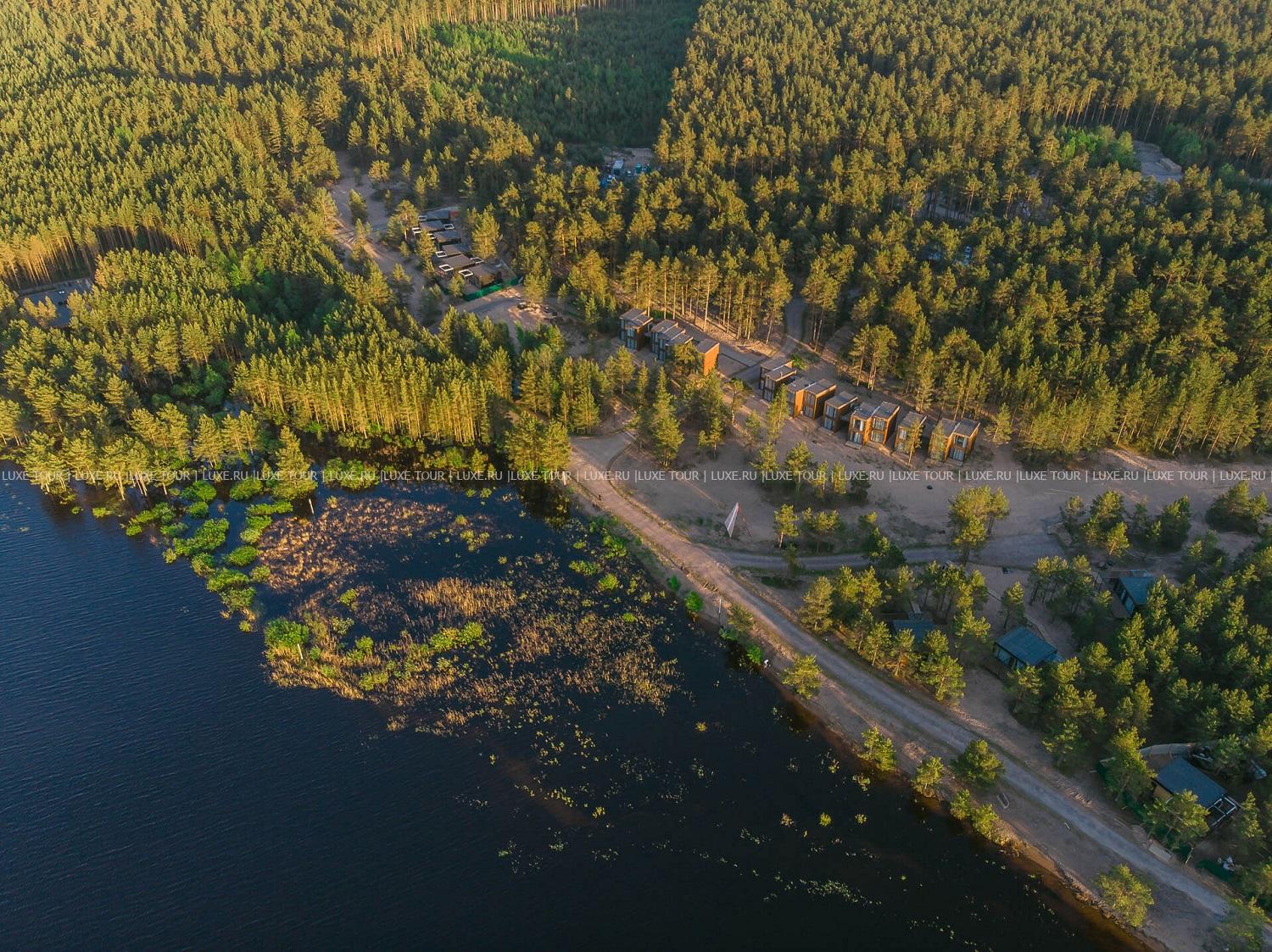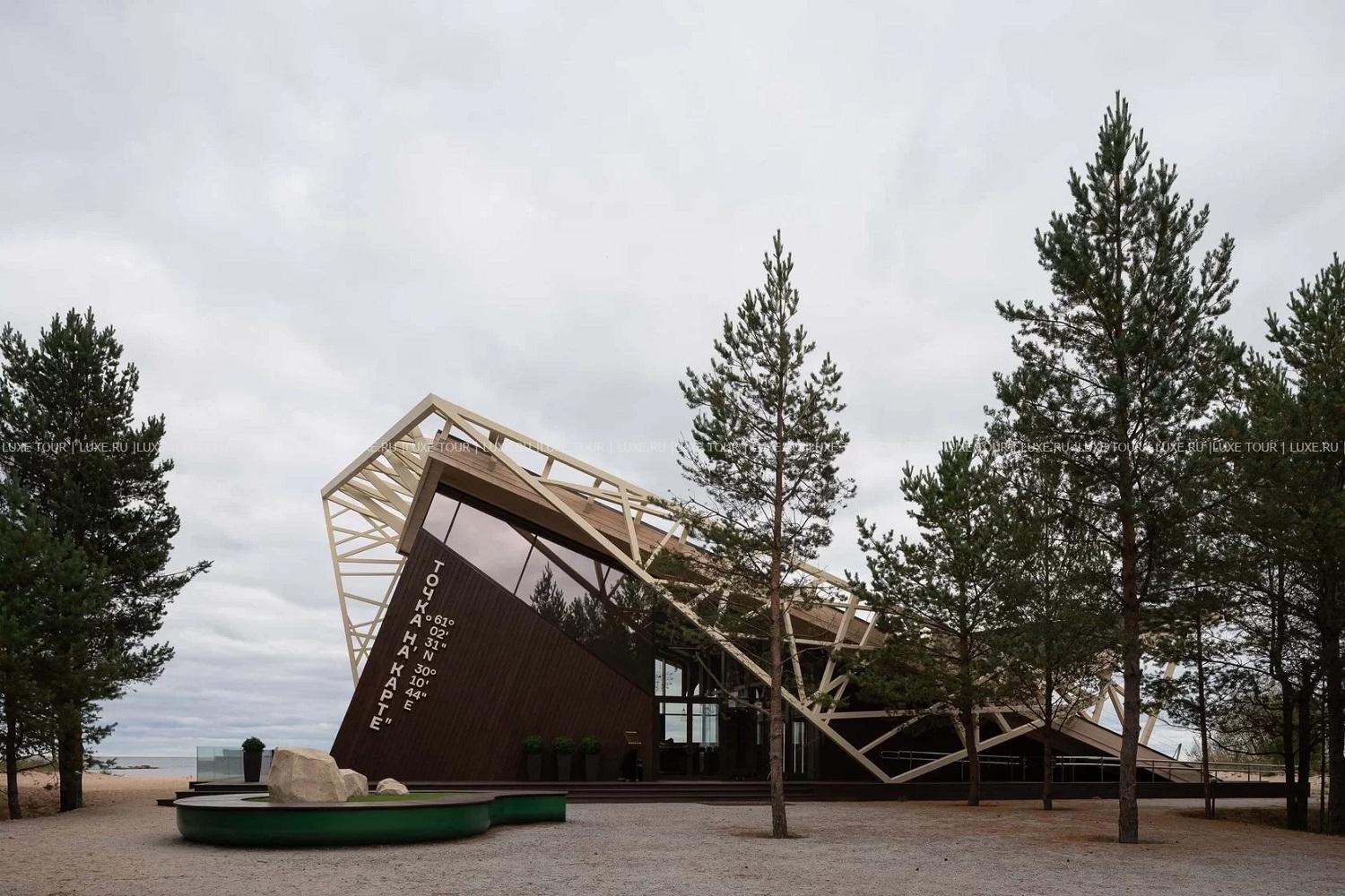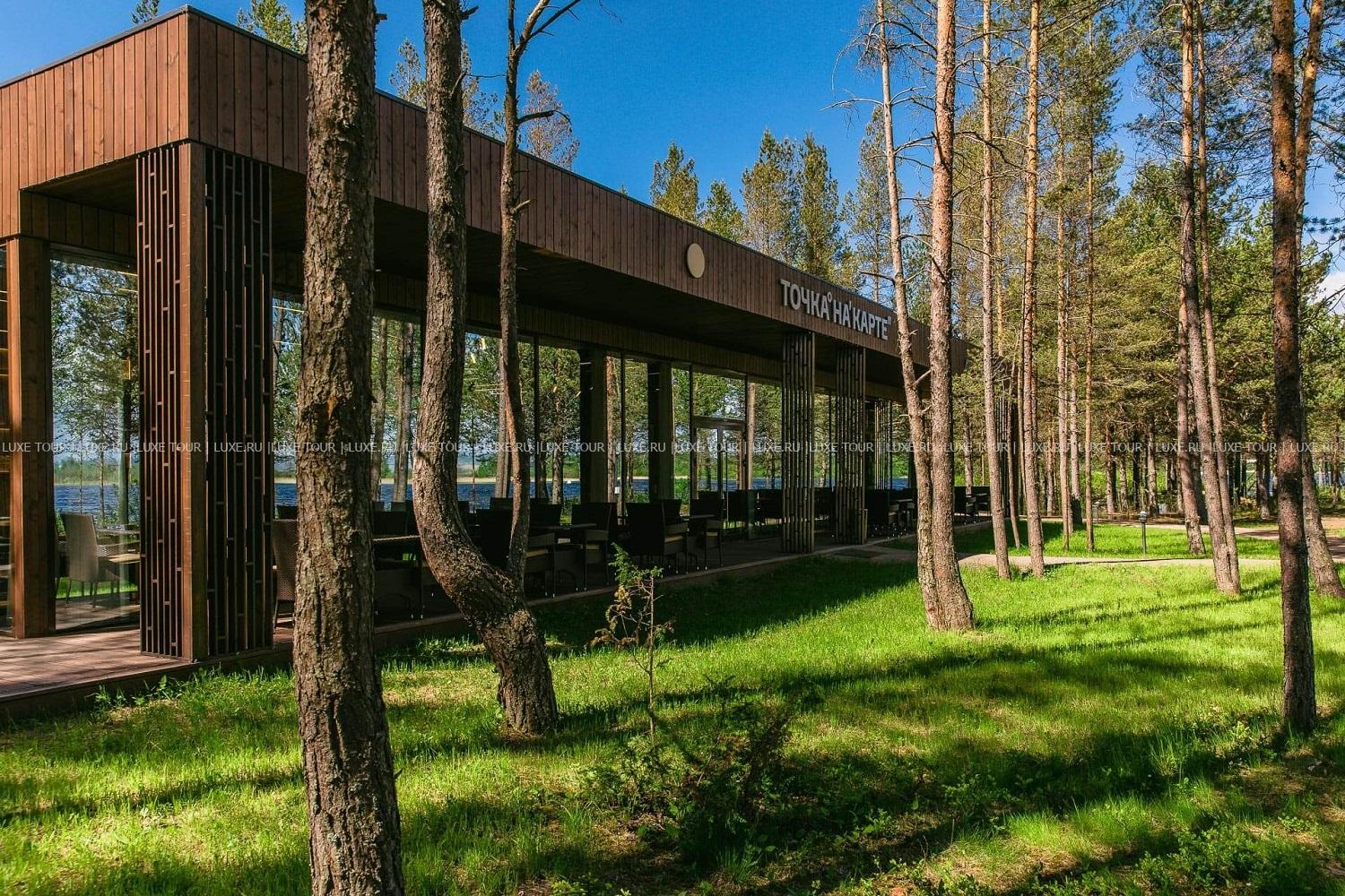 Уютные деревянные коттеджи дизайн-отеля «Точка на карте. Приозерск» разместились среди напоенного ароматами соснового леса, у прибрежной белопесчаной полосы и прозрачных вод Ладожского озера. Чарующие пейзажи открываются здесь отовсюду: из панорамных окон и с террас комфортабельных номеров, из кафе, предлагающего оригинальные блюда местной кухни, такие как котлеты из фазана с моченой брусникой или рыбные ладожские пельмени с еловым маслом, из стильной винной гостиной, где проходят дегустации лучших российских вин, из панорамной гостиной и «парящих» над водой зон для созерцания. Помимо этого гостей отеля ждет масса возможностей для активного отдыха всей семьей. «Точка на карте. Приозерск» – удобная отправная точка для путешествий по Северному Приладожью и прекрасный выбор для уединенного отдыха на природе.