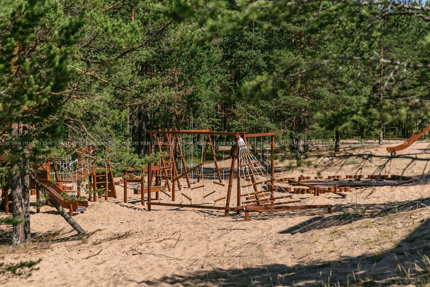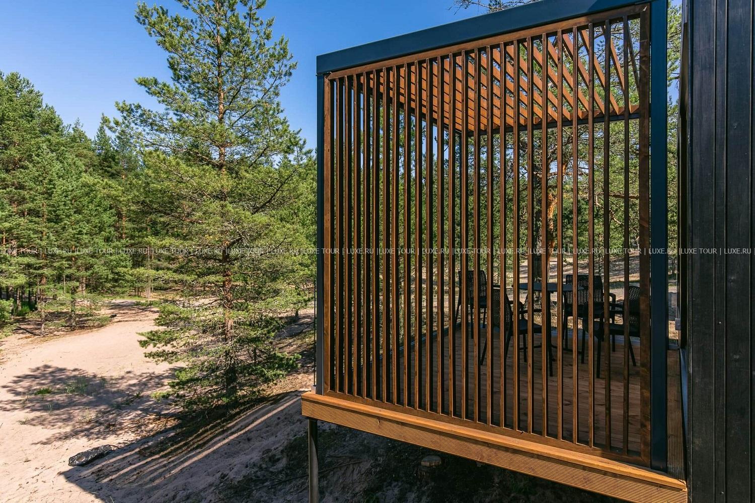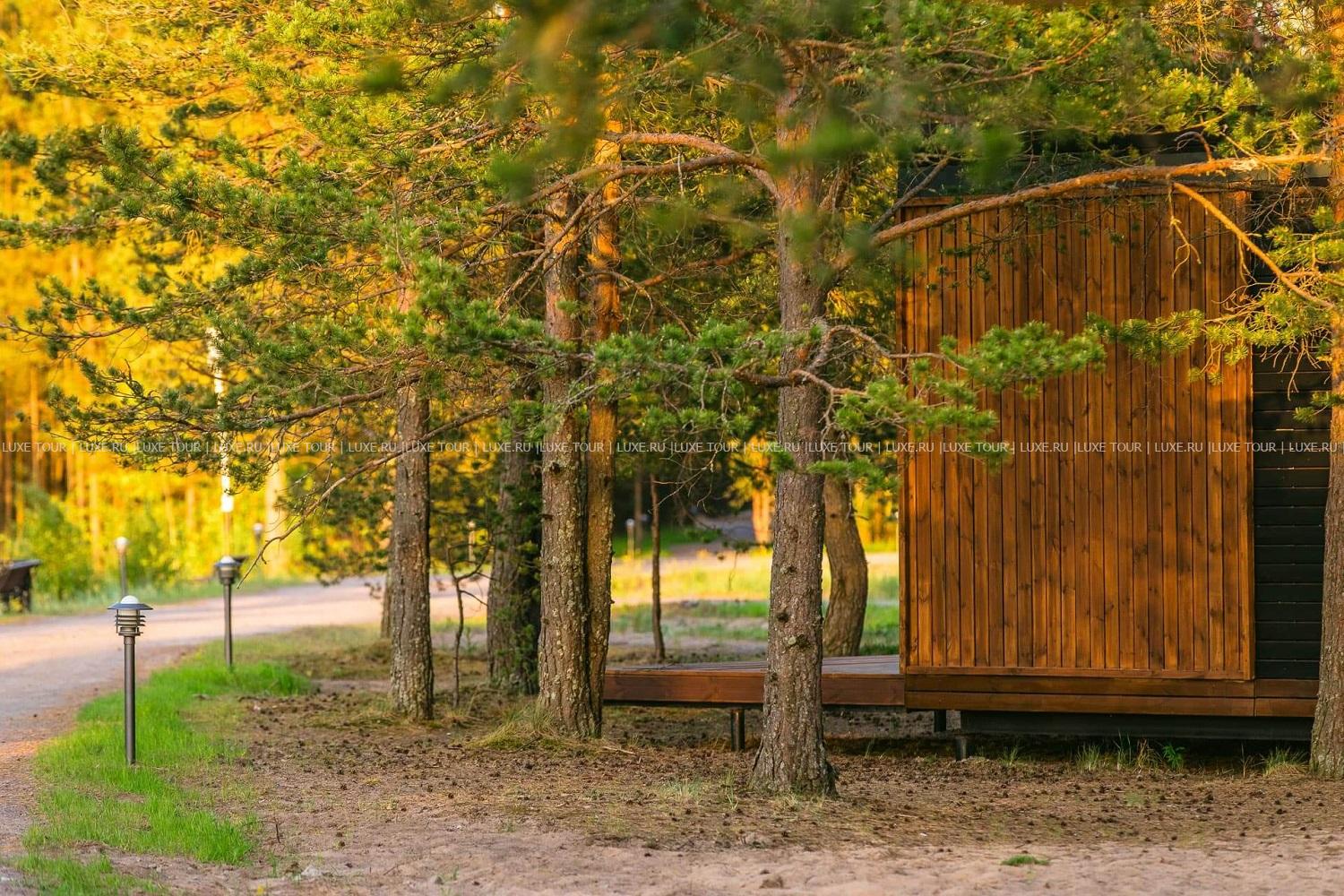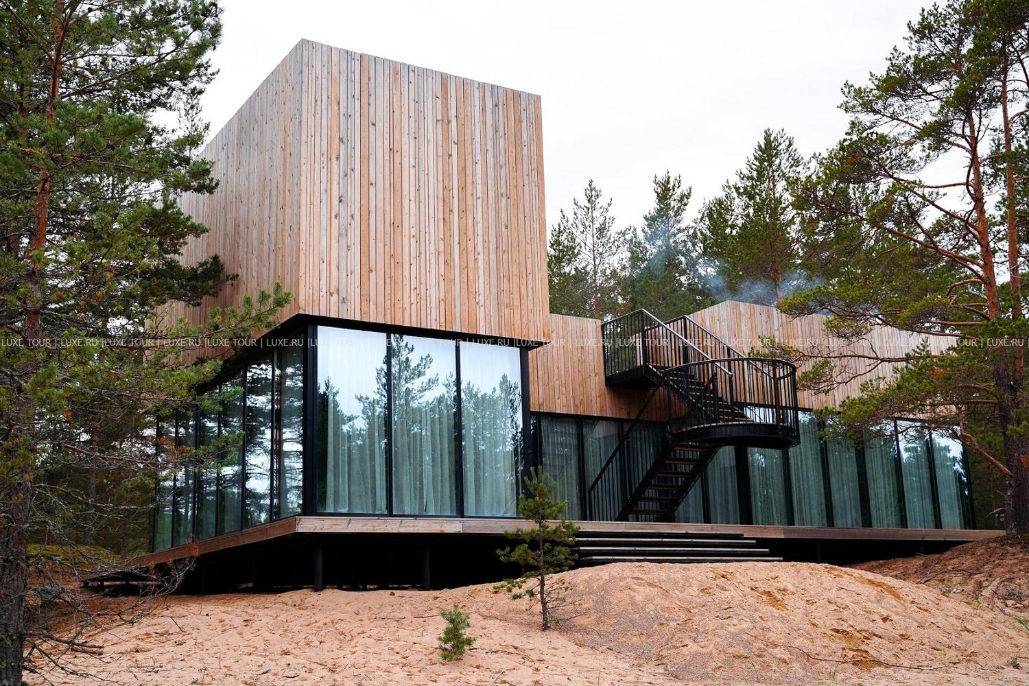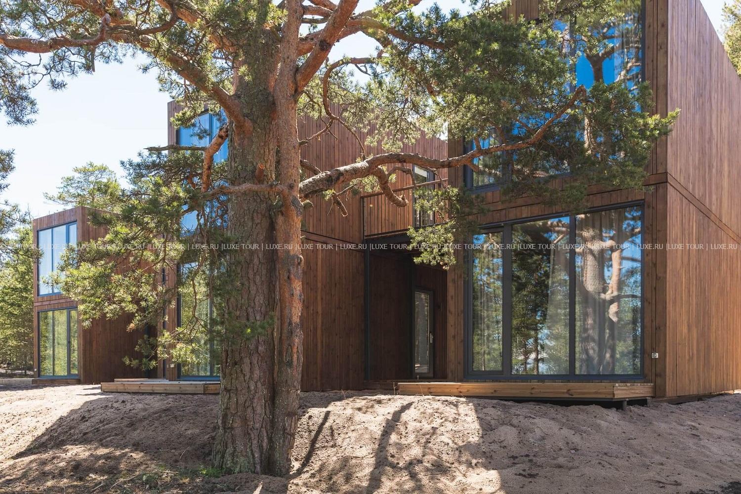 Уютные деревянные коттеджи дизайн-отеля «Точка на карте. Приозерск» разместились среди напоенного ароматами соснового леса, у прибрежной белопесчаной полосы и прозрачных вод Ладожского озера. Чарующие пейзажи открываются здесь отовсюду: из панорамных окон и с террас комфортабельных номеров, из кафе, предлагающего оригинальные блюда местной кухни, такие как котлеты из фазана с моченой брусникой или рыбные ладожские пельмени с еловым маслом, из стильной винной гостиной, где проходят дегустации лучших российских вин, из панорамной гостиной и «парящих» над водой зон для созерцания. Помимо этого гостей отеля ждет масса возможностей для активного отдыха всей семьей. «Точка на карте. Приозерск» – удобная отправная точка для путешествий по Северному Приладожью и прекрасный выбор для уединенного отдыха на природе.