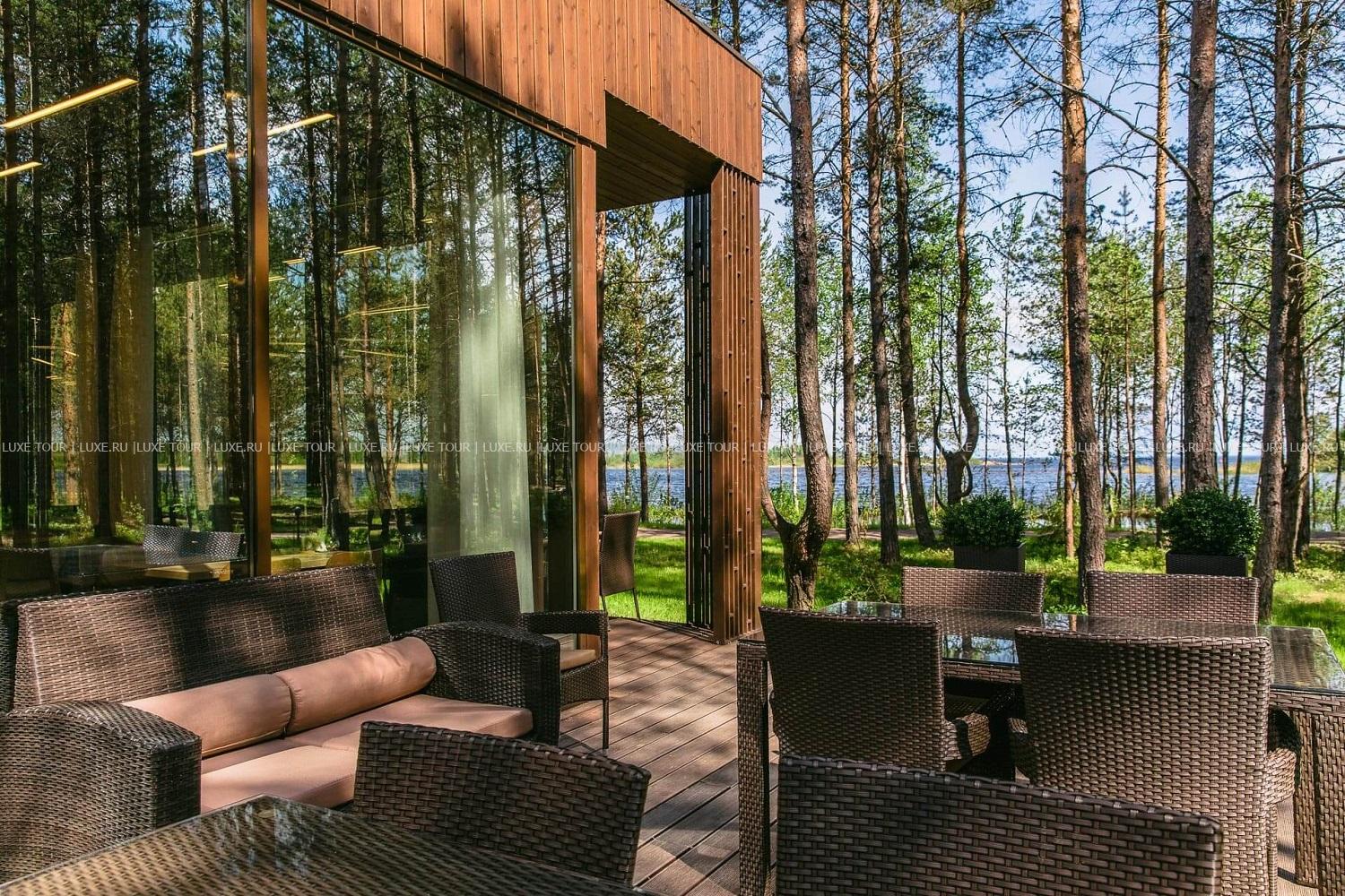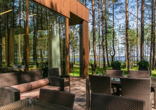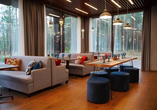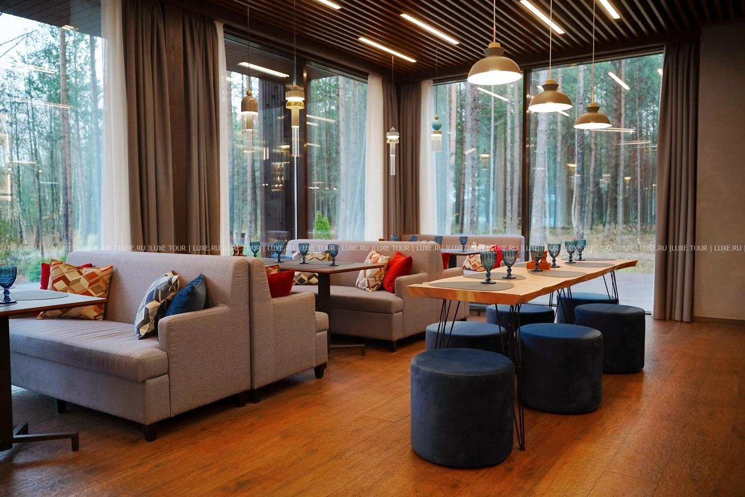 - Уютное кафе с панорамными окнами и видом на лес предлагает современную интерпретацию аутентичных карельских блюд, приготовленных из свежайших местных продуктов.