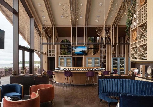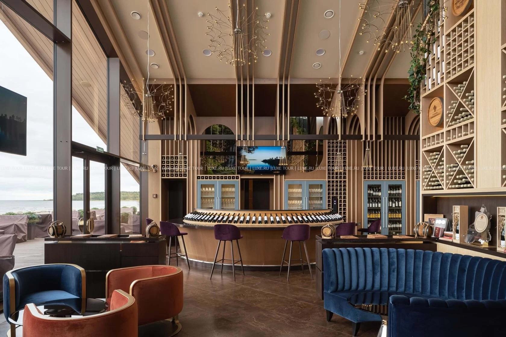 - Элегантная винная гостиная, разместившаяся в здании оригинальной архитектуры на берегу Ладоги, представляет лучшие вина четырех знаменитых российских винных домов и меню изысканных легких закусок.