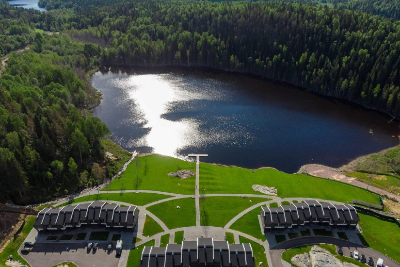 - В отеле 61 номер категории «Стандарт». Комфортабельные номера расположены в трех двухэтажных корпусах, оформлены в современном стиле и отделаны деревом, а с балконов и террас открывается чудесный вид на хвойный лес и озеро Пюяралампи.