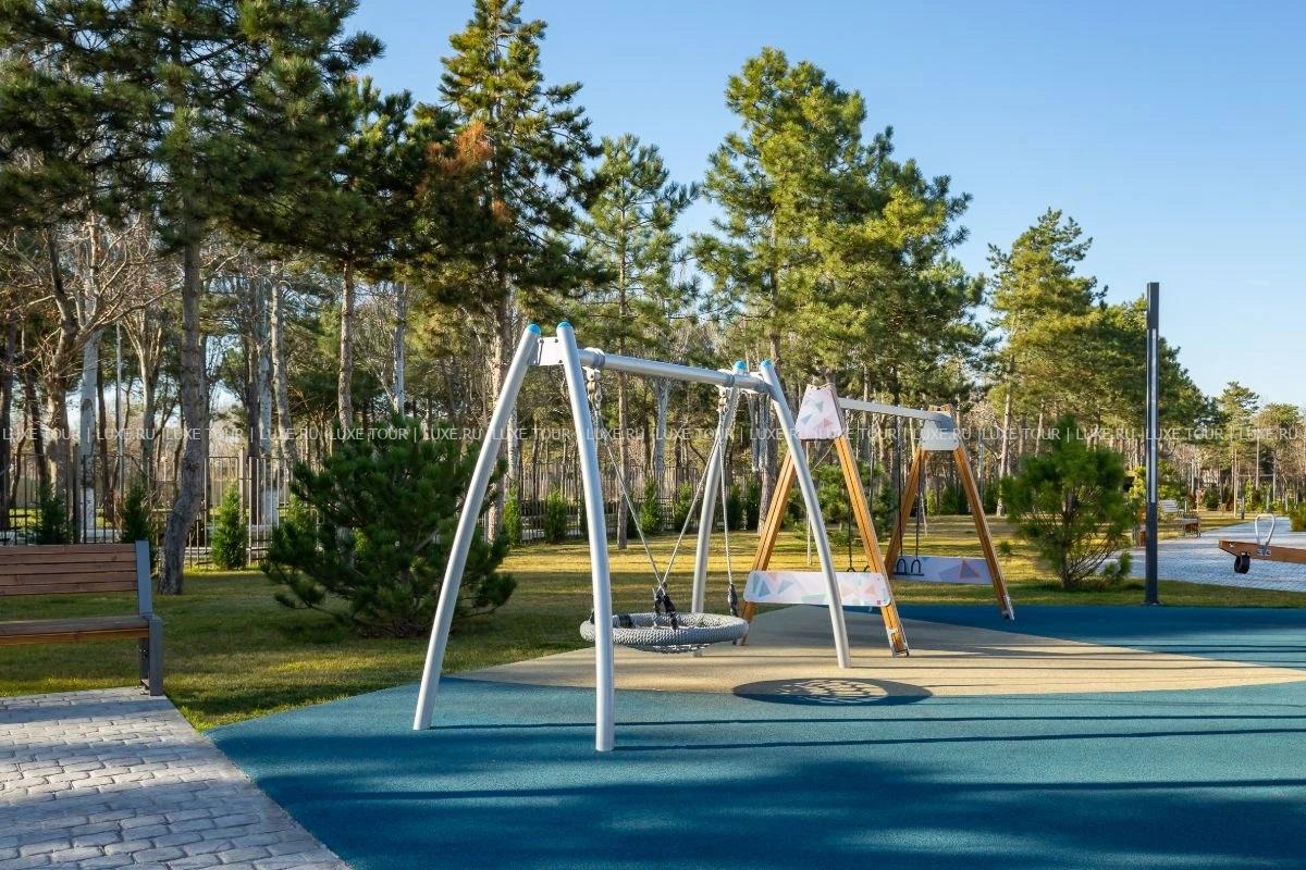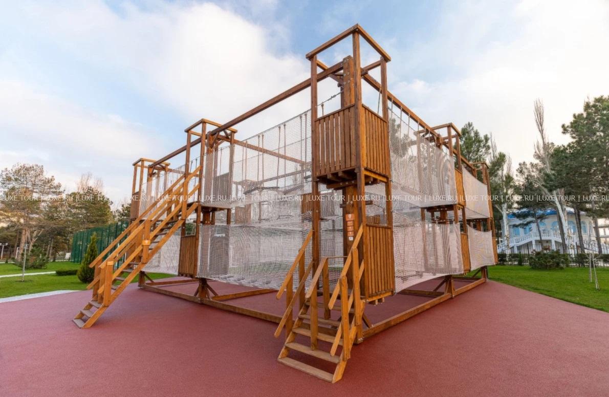 В отеле есть детские зоны бассейнах, игровая площадка с качелями и горками, детский веревочный городок, детская игровая комната, предлагаются спортивные и развлекательные программы для маленьких гостей, также предусмотрены все удобства для отдыха с детьми.