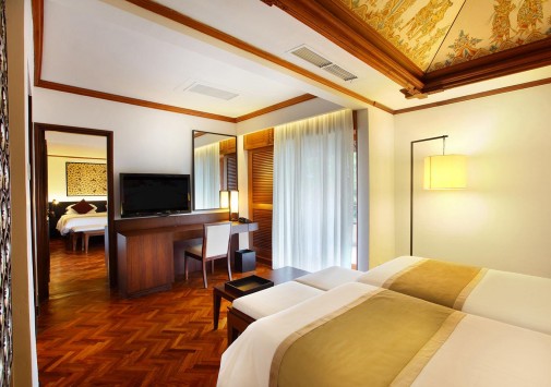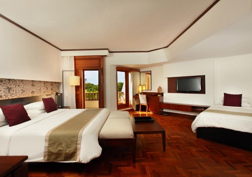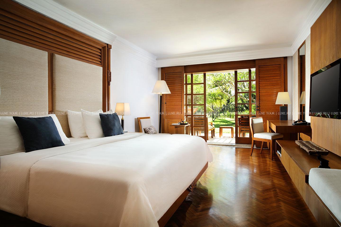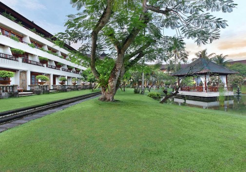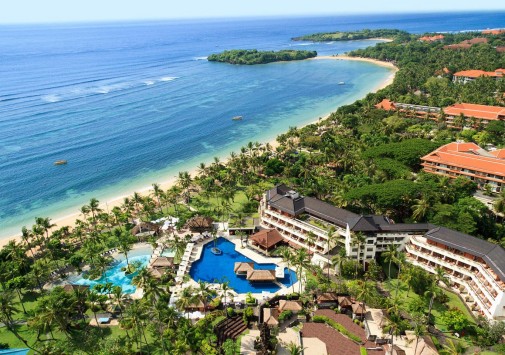 Элегантные здания Nusa Dua Beach Hotel & Spa, выполненные в традициях индонезийской архитектуры, расположились среди 9 гектаров ухоженных тропических садов с бассейнами, живописными прудами с лотосами, уютными беседками. В комфортабельных просторных номерах отеля - элегантные интерьеры в классическом стиле острова Бали, с отделкой из натурального дерева и дорогих тканей, изящной резной мебелью, украшенные изысканными элементами декора и традиционными артефактами, с балконов и террас номеров открывается чудесный вид на сады и океан. Отель располагает СПА Центром Nusa Dua Spa, включающим 25-метровый бассейн, сауну, парную, джакузи, зоны отдыха, салон красоты, СПА бутик, СПА кафе, тренажерный зал, студию аэробики, а также павильоны, предлагающие широкий спектр услуг по уходу за здоровьем и внешностью, основанных на традиционных методиках, и с использованием трав, цветов и специй Бали. На территории Nusa Dua Beach Hotel & Spa находятся: основной бассейн, бассейн-лагуна, 2 теннисных корта, 2 площадки для сквоша, центр водных видов спорта, стена для скалолазания, бильярд, в 5 минутах от отеля расположен гольф-клуб с полем на 18 лунок, предлагается горный велосипед, пляжный волейбол, морские прогулки, развлекательные и шоу-программы.