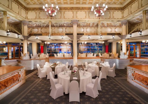 5 залов для заседаний и банкетов, общей вместимостью до 1000 человек, просторный бальный зал на 500 человек, современно оснащенный конференц-зал являются идеальным местом для проведения любых мероприятий.