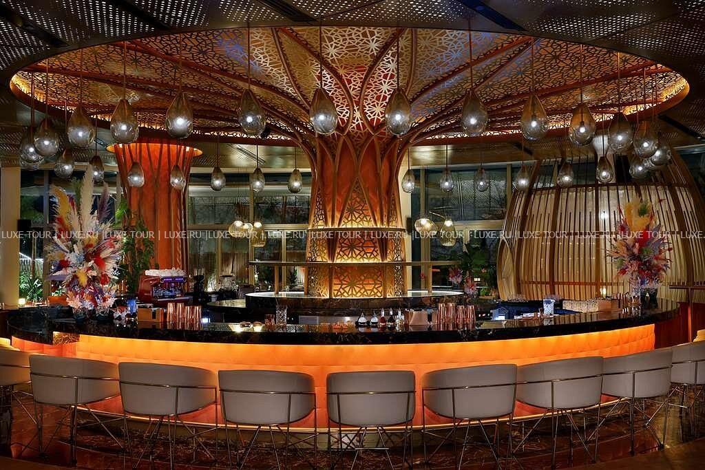 • Шикарный двухэтажный бар The Highmore, расположенный на верхнем этаже, предлагает отличный выбор деликатесных закусок и напитков премиум-класса, а также живую музыку, игровой салон и открытую террасу с панорамным видом на Персидский залив.