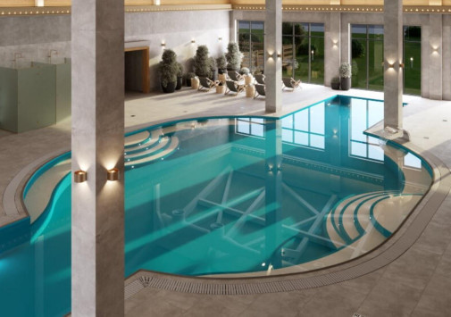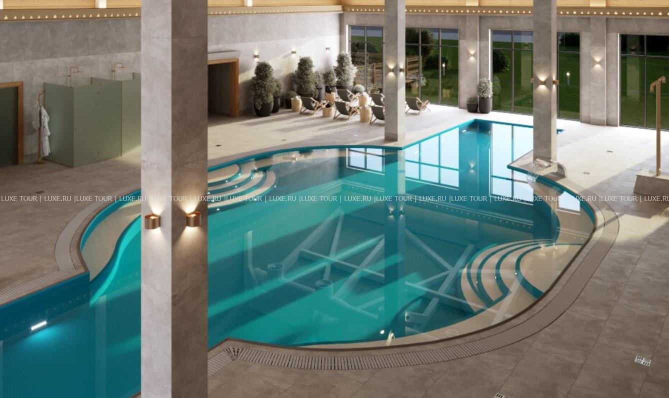 В отеле имеется открытый подогреваемый бассейн (800 м2, работает с мая по октябрь) с каскадными водопадами, гидромассажной зоной и детской секцией, а также крытый 20-метровый бассейн в Spa-центре.