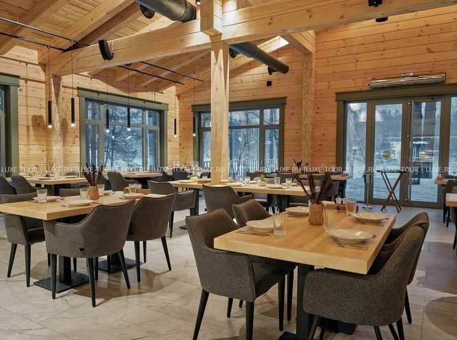 - Ресторан Сосны с панорамным видом на лес предлагает вкусный завтрак «шведский стол», а также изысканное меню региональных блюд на обед и ужин.