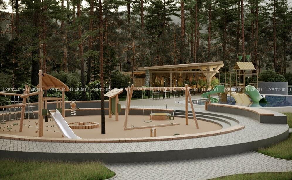 В отеле есть детская игровая площадка, работает детский клуб, в открытом бассейне предусмотрена детская зона с водными горками и аттракционами, также возможны услуги няни (по запросу).
