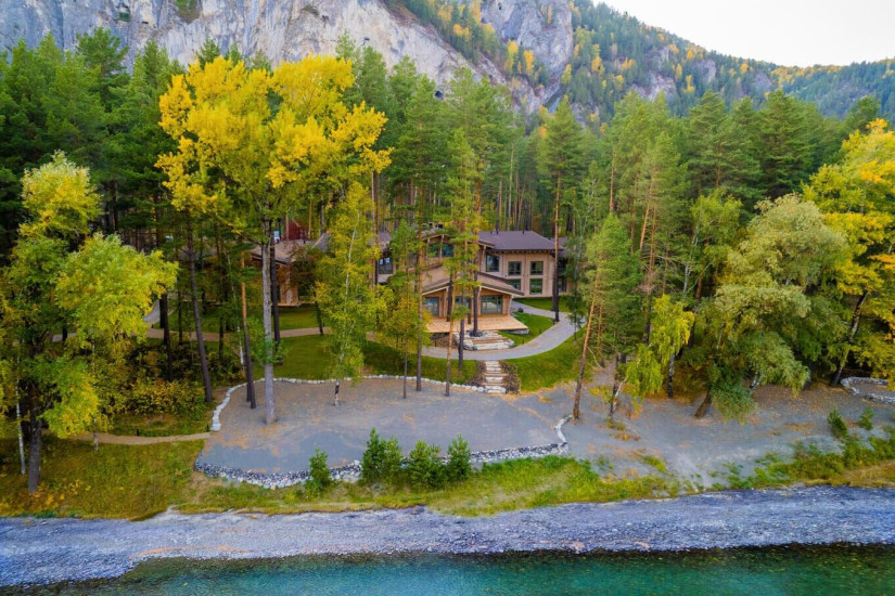 - В отеле 55 номеров различных категорий и 19 шале. Комфортабельные номера с отделкой из натурального дерева и шале из массива алтайского кедра и сосны сочетают стильный современный дизайн и уютную атмосферу, а из панорамных окон и с террас открывается чудесный вид на реку Катунь, вековой лес и величественные алтайские скалы.