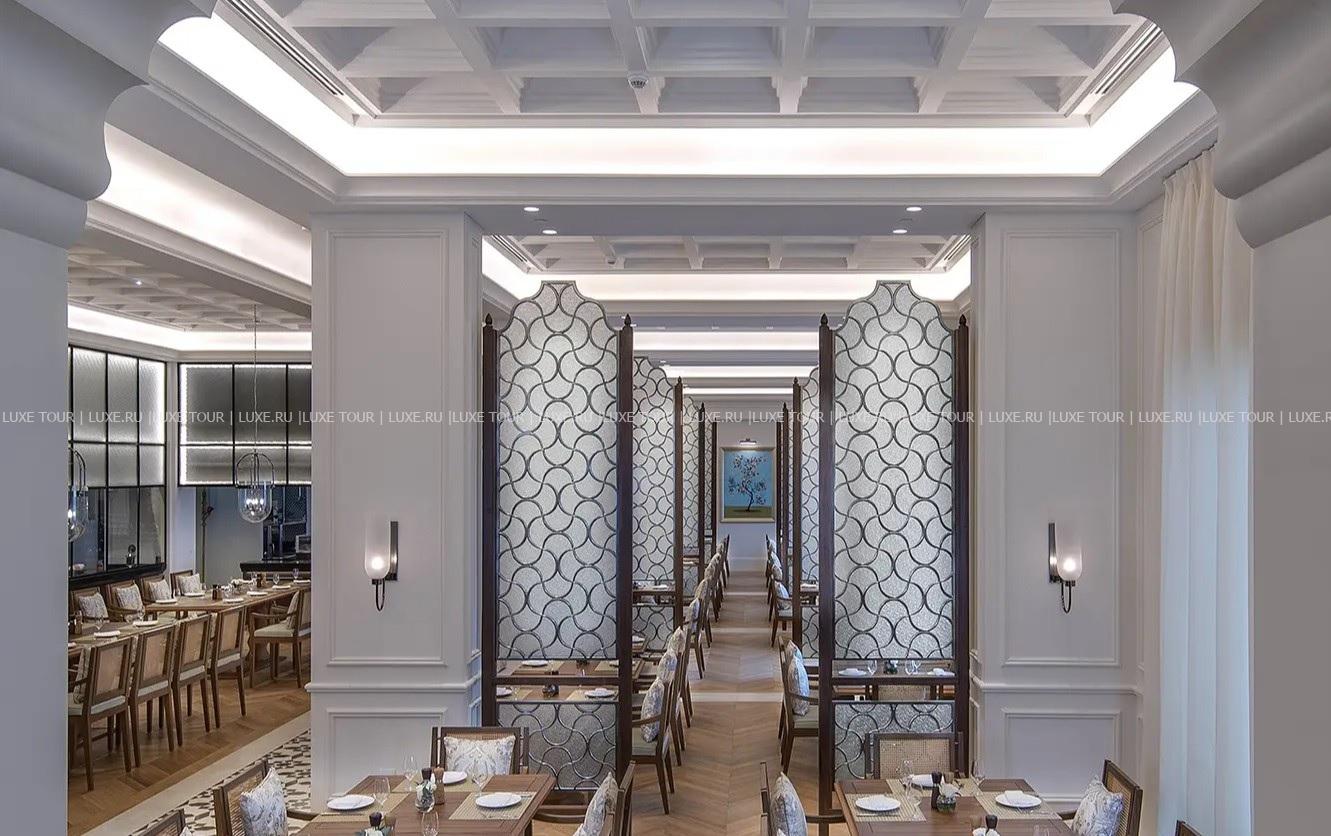 • Главный ресторан с элегантным залом, открытой террасой и видом на бассейн и Персидский залив представляет разнообразие блюд арабской, индийской, тайской и западной кухни.