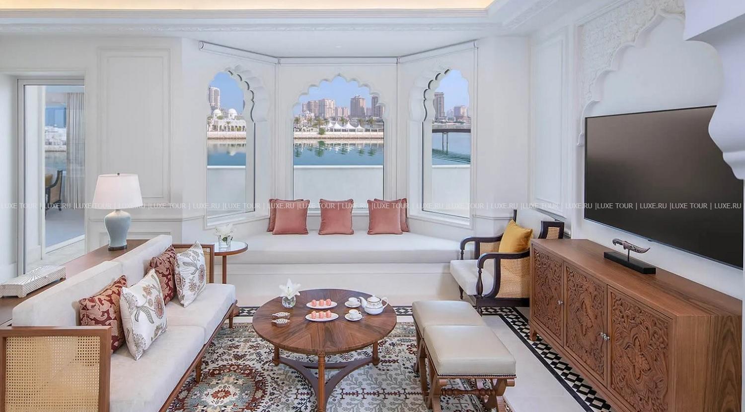 The Chedi Katara Hotel & Resort – роскошный дворец, расположенный у широкого частного пляжа и лазурных вод Персидского залива. Настоящая архитектурная жемчужина вдохновлена наследием империи Моголов и Османской империи: стройные колоннады, изящные арки, тонкая резьба, причудливые узоры машрабии и великолепное внутреннее убранство, украшенное коллекцией произведений искусства. При этом отель предлагает весь спектр современных услуг – от элегантных номеров с видом на залив и шикарных вилл с собственными бассейнами до гастрономического разнообразия в ресторанах, сверкающих бассейнов и расслабляющих процедур в Spa-центре. The Chedi Katara Hotel & Resort сочетает эксклюзивный сервис и культурно-исторические традиции Катара.