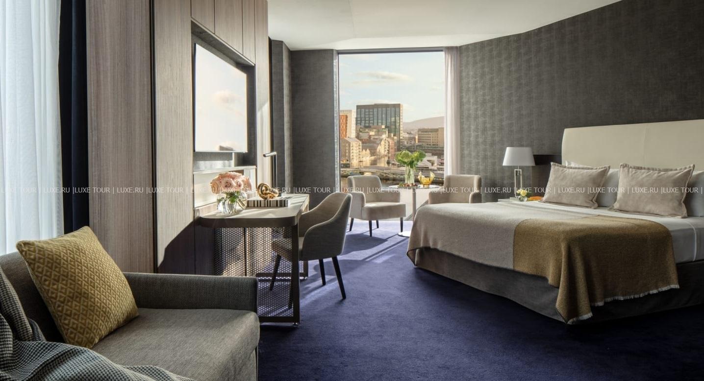 Современное здание оригинальной архитектуры Anantara The Marker Dublin, отражающееся в зеркальной глади Большого канала, находится рядом с модными кафе, магазинами и деловыми кварталами космополитичного района Докленд, который называют дублинскими «Силиконовыми доками». Элегантный отель, входящий в престижную ассоциацию The Leading Hotels of the World, предлагает гостям высококлассный сервис: стильные комфортабельные номера, бар на панорамной террасе на крыше и деликатесы ирландской кухни в ресторане, оздоровительные программы в фитнес-центре, большой бассейн и разнообразие процедур в великолепном центре Anantara Spa, а также вместительные конференц-залы и множество возможностей для активного отдыха. Anantara The Marker Dublin – городской оазис в живописном уголке Дублина.