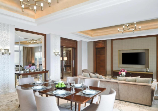 Al Messila, a Luxury Collection Resort & Spa, Doha – фешенебельный отель в дворцовом стиле, расположенный между песками пустыни и оживленным центром Дохи. Гости отеля могут выбрать элегантные номера с балконами и шикарные виллы с несколькими спальнями и собственными бассейнами, насладиться блюдами высокой кухни, в том числе, приготовленными под руководством шеф-повара Пино Лаварра – обладателя двух звезд Мишлен, поплавать в большом сверкающем бассейне, заняться спортом на кортах и в фитнес-центре и расслабиться с помощью уникальных процедур в великолепном Spa-комплексе площадью 14 000 м2. Для маленьких гостей работает замечательный клуб Little Explorers, а для проведения деловых и торжественных мероприятий имеются вместительные, современно оснащенные залы. Al Messila, a Luxury Collection Resort & Spa, Doha – роскошный оазис рядом с центром катарской столицы.