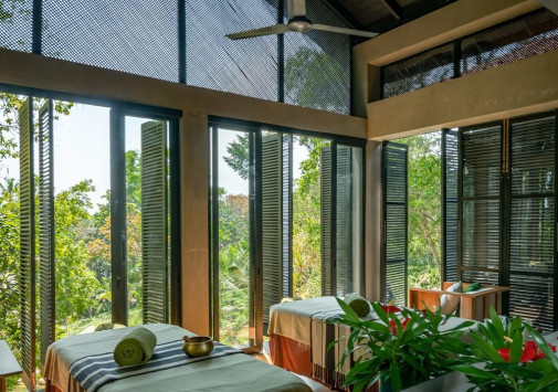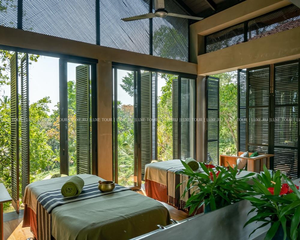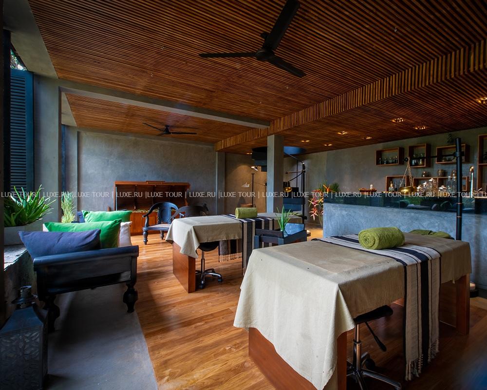 Среди зелени джунглей расположен первоклассный центр Haritha Spa, в котором имеются гидромассажная и травяные ванны, сауна, парная, душ Виши, студия маникюра, зона отдыха, кабинет врача-специалиста по аюрведе и процедурные кабинеты. В центре предложен широкий спектр индивидуально разработанных программ разной длительности, оздоровительных процедур и услуг по уходу за телом и лицом на основе древних практик аюрведы, современных методик и использовании натуральных местных продуктов и эксклюзивной косметики Elemis и Margarete Dabbs.