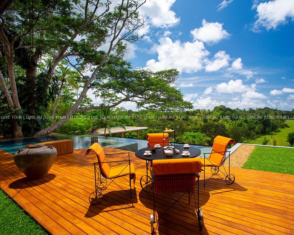 - Также предлагается широкий выбор домашнего мороженого, послеобеденное чаепитие с лучшими сортами шри-ланкийского чая и десертами, кальян на террасе бара, обслуживание в номерах, организация барбекю, пикников и частное обслуживание.