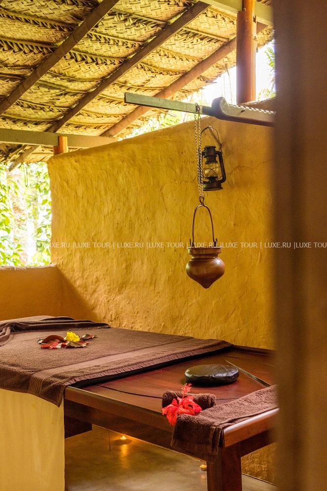 В пышном саду находится центр Aarogya Spa, в котором имеются травяная ванна, инфракрасная сауна, гидромассажная ванна и душ на открытом воздухе, зоны для аюрведических процедур и спа-процедур для ног, зона отдыха и 4 процедурных кабинета, включая спа-сьют для пар. Название Aarogya в переводе с санскрита означает «общее благополучие» и «здоровье ума, тела и духа», а меню центра включает широкий спектр процедур и программ, основанных на аюрведических традициях и современных методиках, и использовании натуральных местных продуктов.