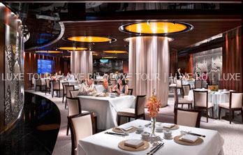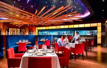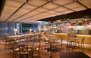 В обеденном зале отеля Crockfords Tower на завтрак предложен шведский стол с китайскими изысками, японскими суши и классическими блюдами международной кухни. Днем в обеденном зале сервируют чай, кофе и предлагают прохладительные напитки в обрамлении легкой музыки.