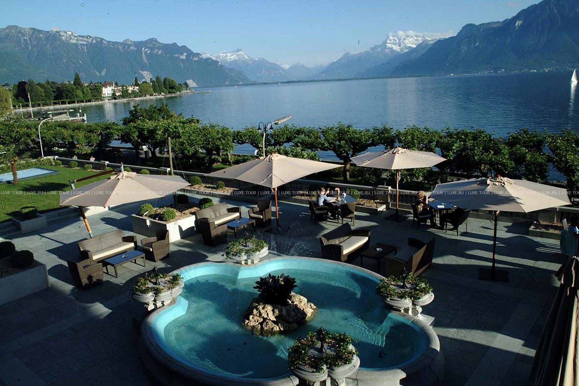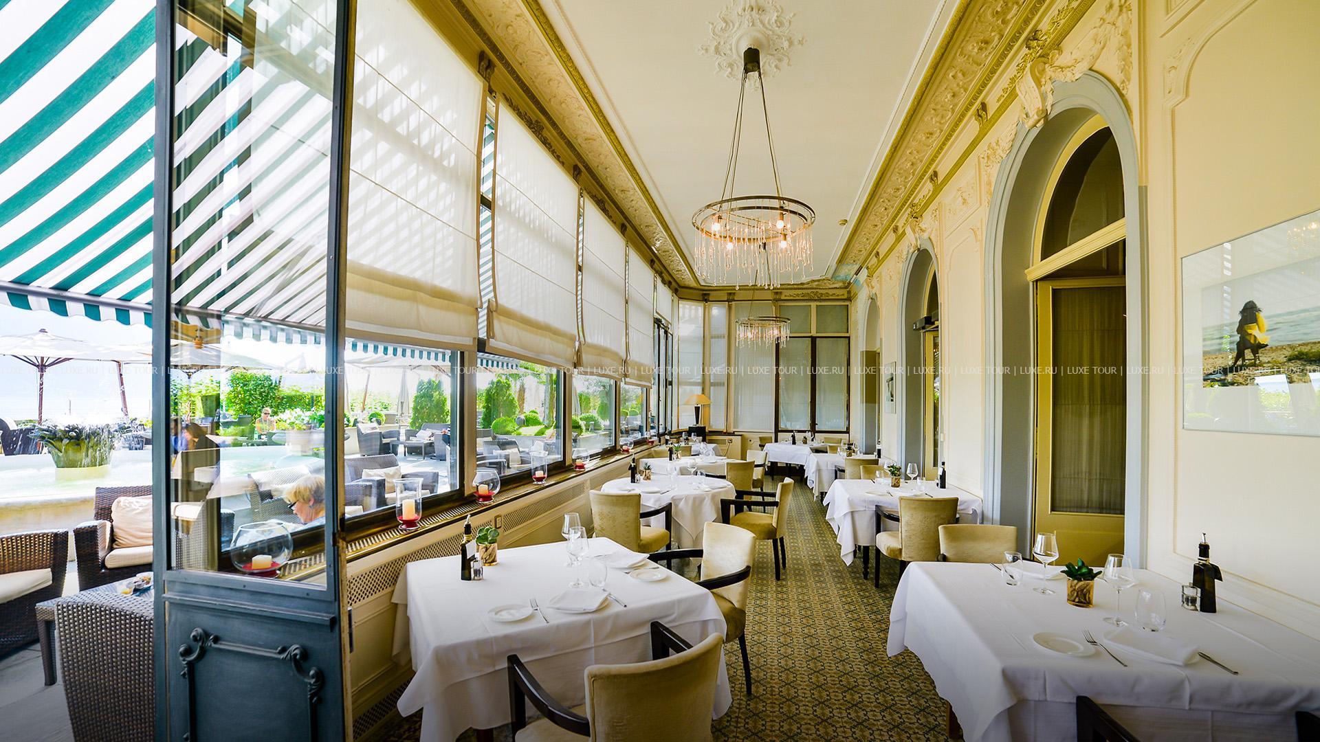 - В романтической обстановке элегантного ресторана, оформленного в стиле эпохи Людовика XV, и на панорамной террасе с видом на Женевское озеро и Альпы, гостей ждут тонкие блюда французской и местной кухни.