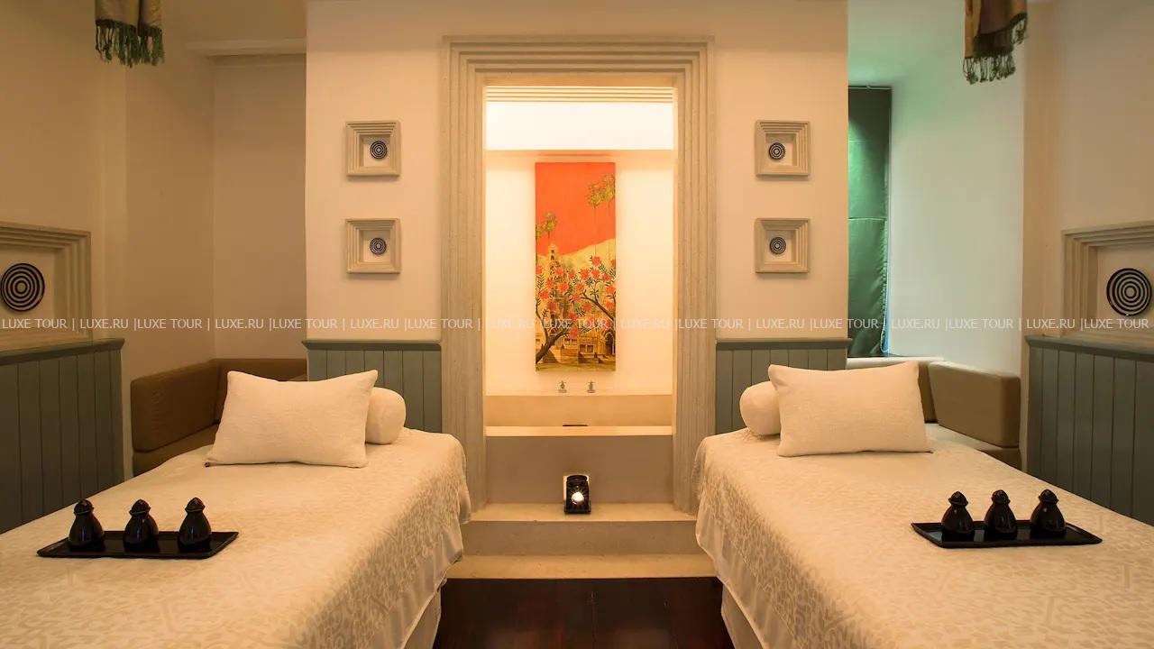 Отель располагает великолепным Spa-центром с парной, зоной отдыха и 7 процедурными кабинетами, в которых предложен широкий спектр услуг по уходу за телом и лицом и спа-ритуалов на основе кхмерских и камбоджийских традиций и с использованием натуральных органических продуктов, включая экзотические растения и фрукты.