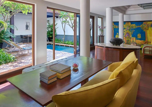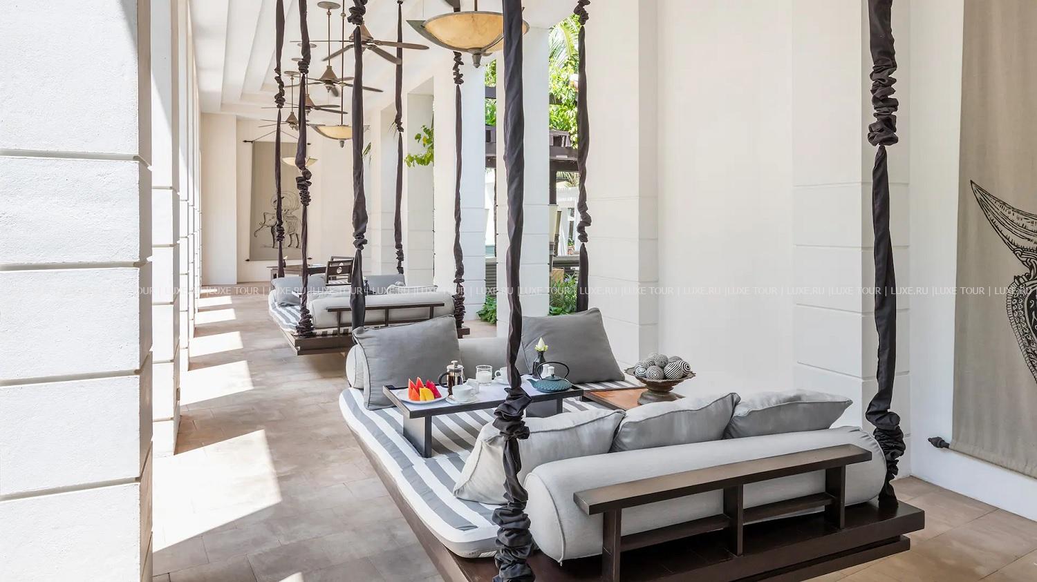 - Лаундж-бар The Living Room впечатляет шикарным дизайном, сочетающим колониальный стиль и камбоджийские мотивы, и представляет широкий выбор коктейлей, коллекционных вин и деликатесных закусок.