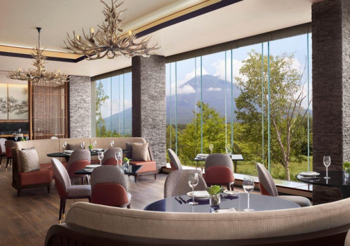 - Уютный лаундж-бар Ume с камином и чудесным видом на лес и горы – идеальное место для отдыха за коктейлем или бокалом вина.