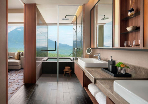 В отеле имеются открытые и крытые традиционные японские ванны «онсен».