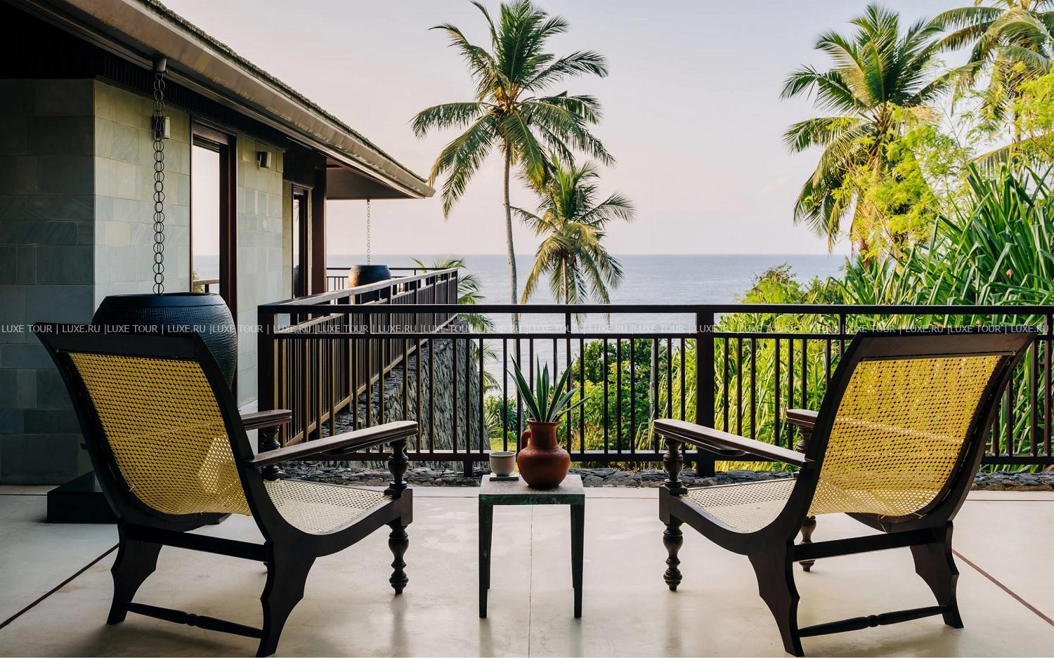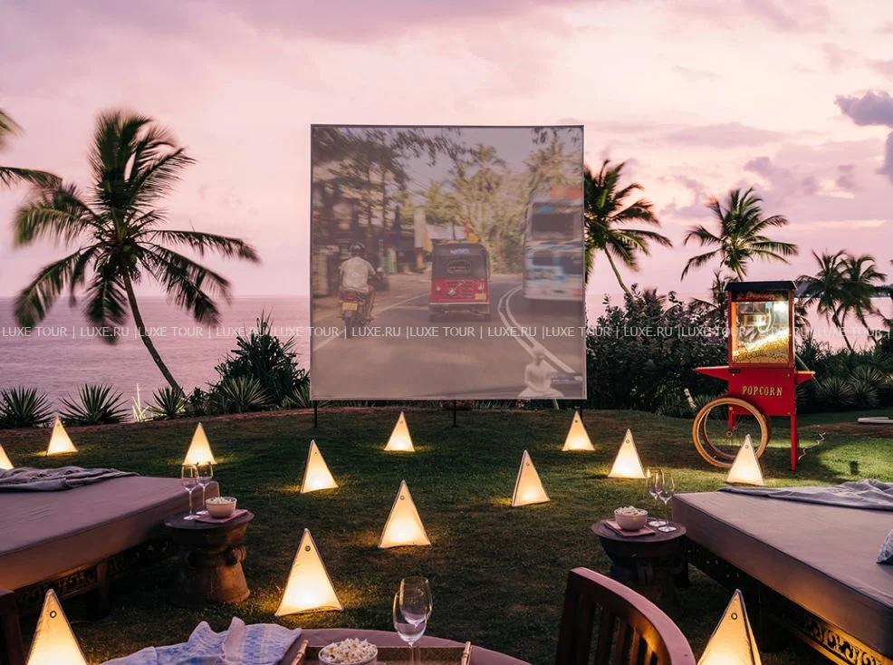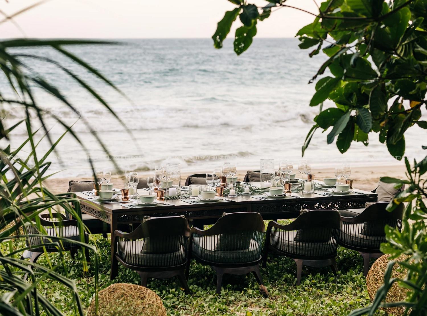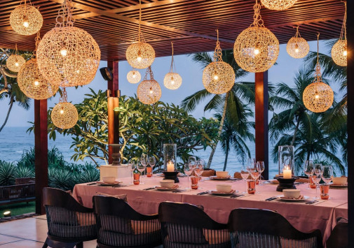 - В обеденных павильонах и на террасах вилл Monara и Divia, в саду, у пляжа и на террасе у бассейна можно насладиться изысканными блюдами интернациональной и шри-ланкийской кухни, выпить чашечку цейлонского чая с десертами и отдохнуть за аперитивом, бокалом вина или освежающим коктейлем, любуясь великолепным видом на океан.