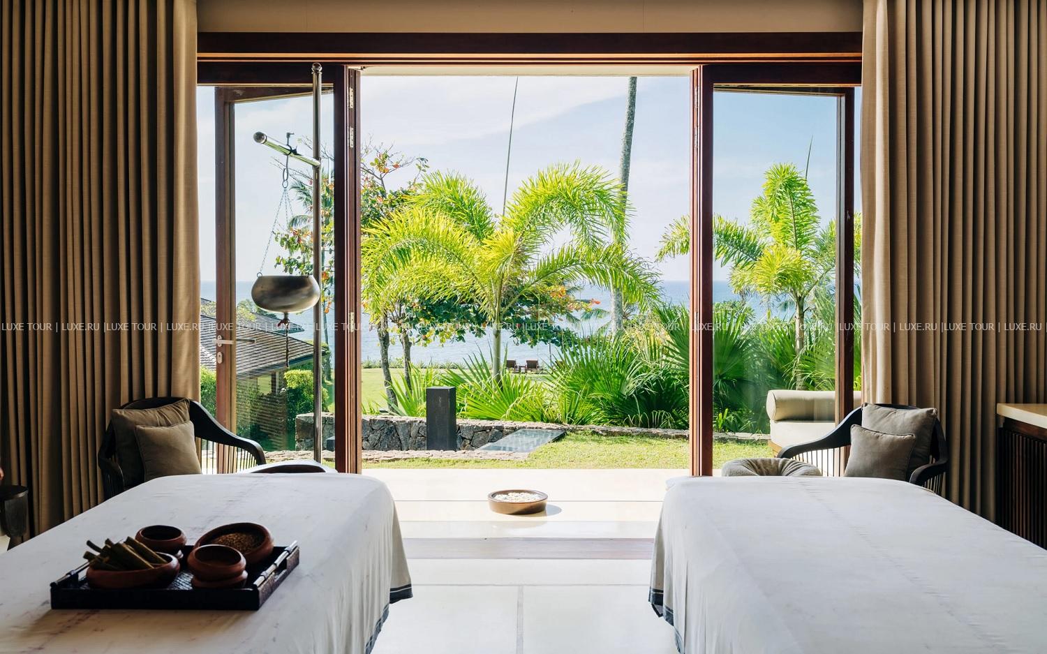 Spa-центр с видом на океан предлагает разнообразие массажей и процедур по уходу за телом и лицом на основе аюрведических методик и с использованием натуральных местных продуктов.