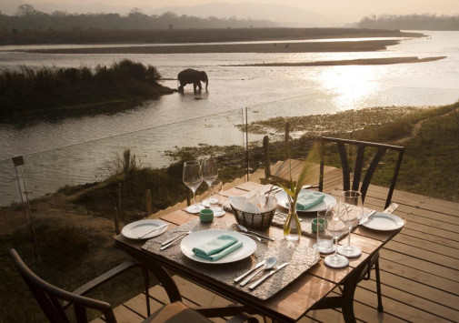 - На открытой террасе с видом реку Рапти и водопой диких животных подают вкусные блюда, приготовленные на гриле.