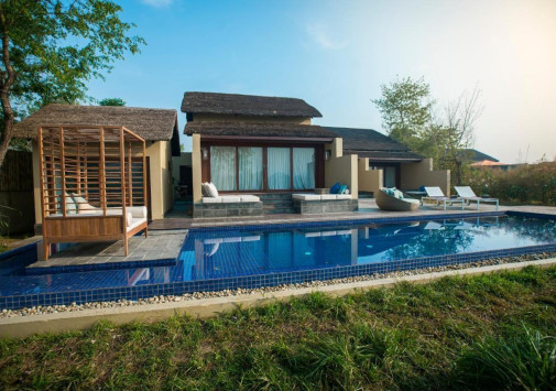 Meghauli Serai, A Taj Safari расположен на берегу реки Рапти в Национальном парке Читван, среди изумрудных лугов и тропических зарослей низменности Тераи. Читван, известный как «Сердце джунглей» и внесенный в список объектов ЮНЕСКО, когда-то был излюбленным местом охоты непальских королей. Сегодня Королевский парк впечатляет многообразием эндемичной фауны: более 620 видов птиц, индийские слоны, тигры, леопарды, медведи-ленивцы, крокодилы-гавиалы и исчезающие однорогие носороги – их в дикой природе осталось примерно 3000 особей, из которых 600 обитают именно здесь. Увидеть уникальных животных гости могут во время увлекательных сафари, в том числе, на слонах или на лодке по неспешной реке, а любоваться завораживающим пейзажами парка можно с террас уютных номеров и элегантных вилл с персональными бассейнами, со смотровой площадки, купаясь в панорамном бассейне или наслаждаясь вкусными блюдами на деревянной платформе, построенной над речным водопоем. Отель знакомит гостей и с древними непальскими традициями – от архитектуры и интерьеров, украшенных артефактами и произведениями искусства местных мастеров, до фольклорных программ, гончарных мастер-классов и посещений аутентичных деревень. Meghauli Serai, A Taj Safari предлагает незабываемый отдых среди заповедной природы парка Читван.