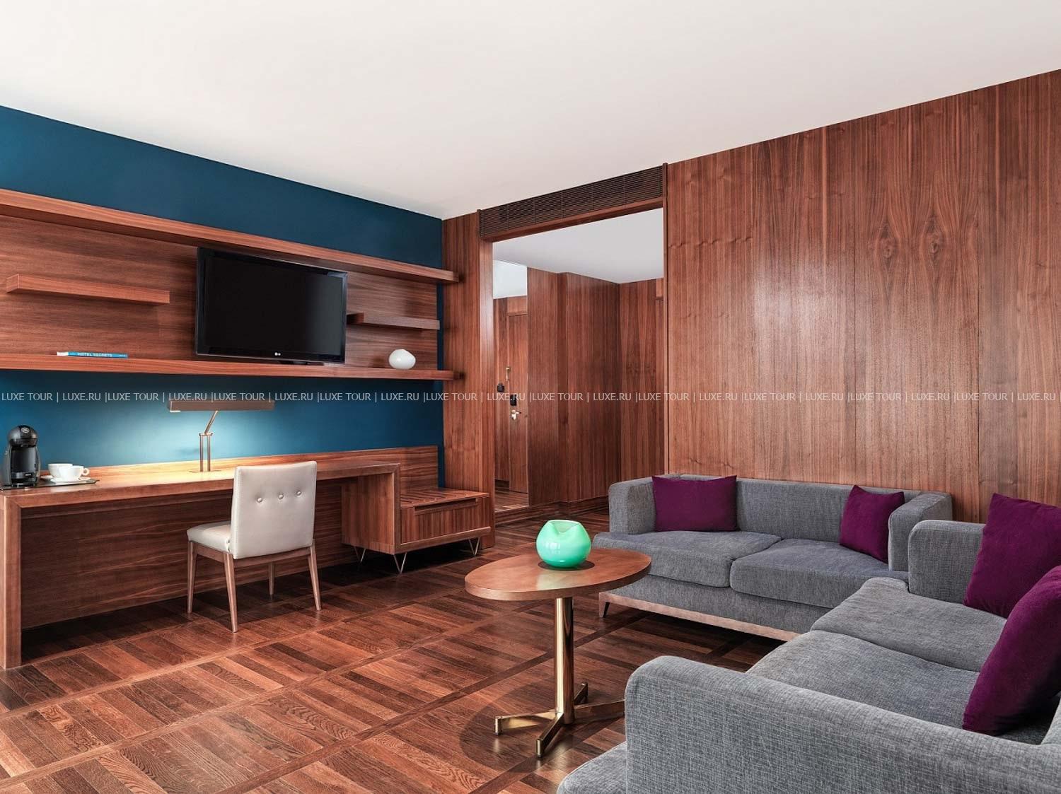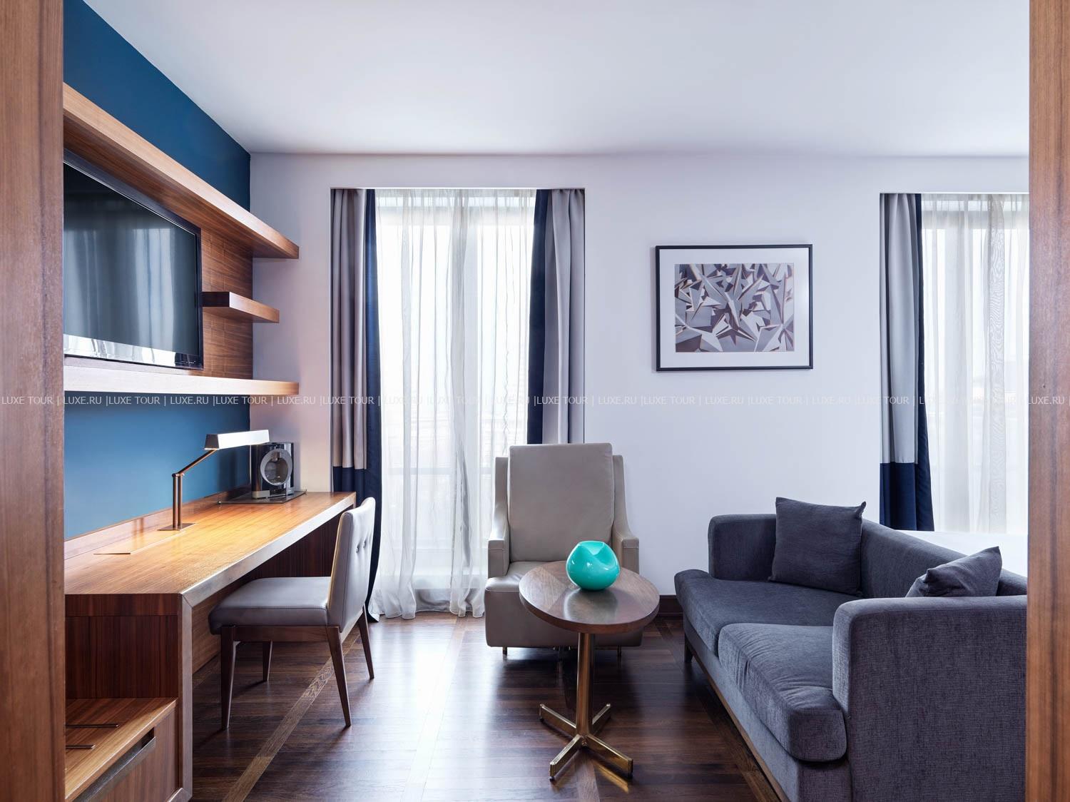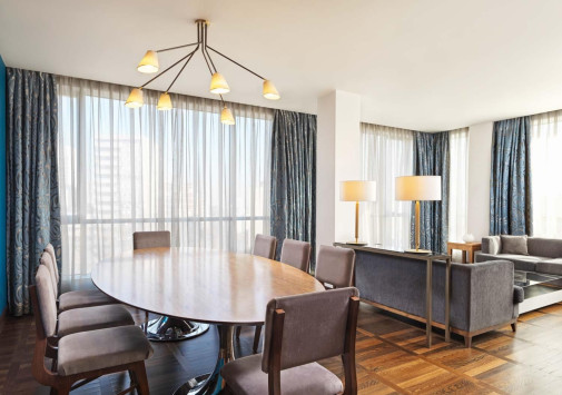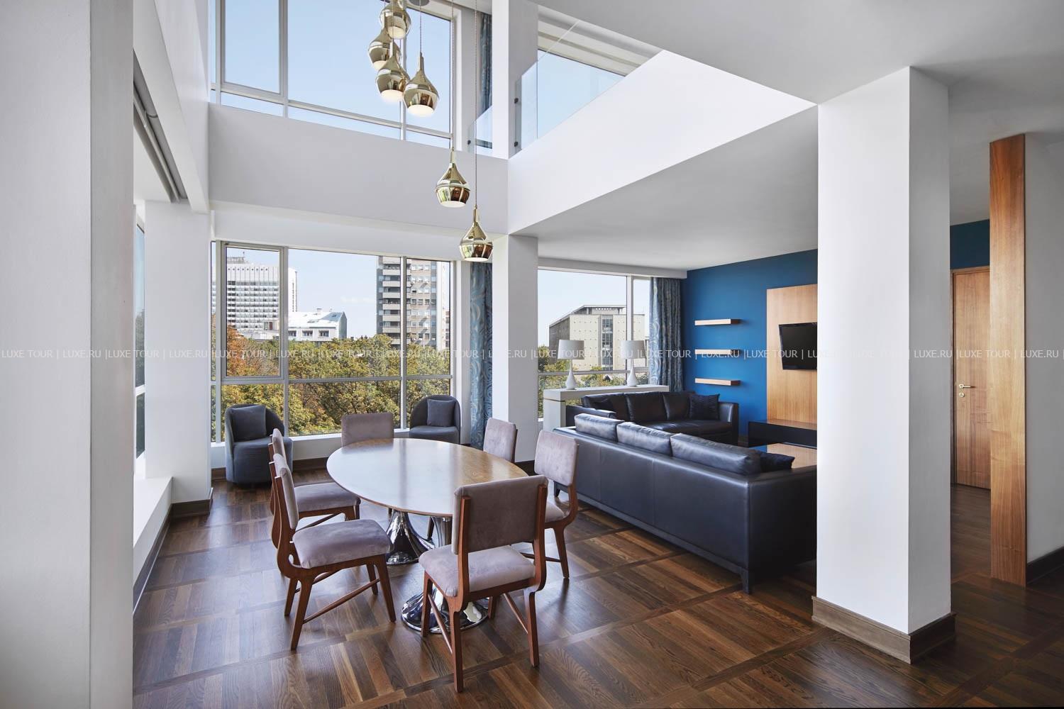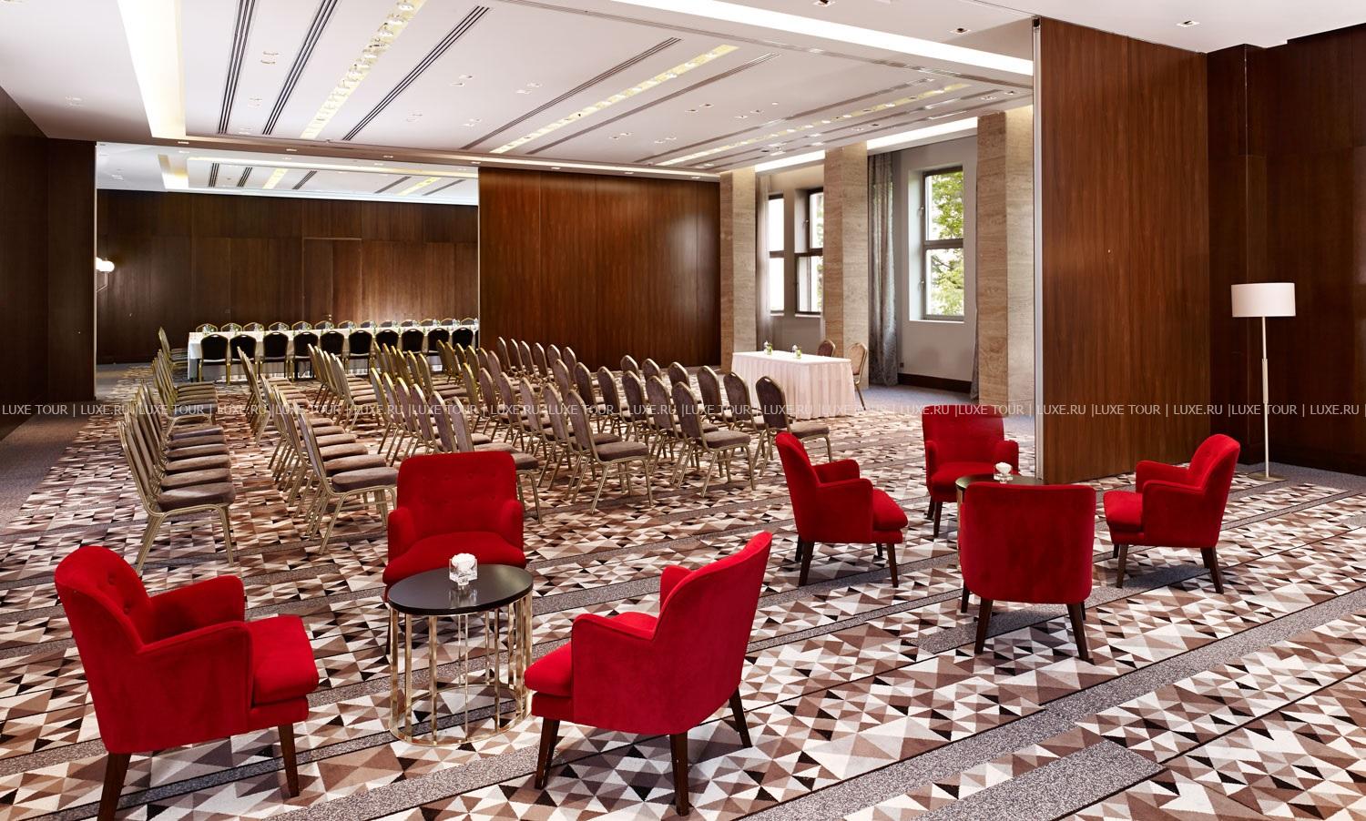 Для гостей – залы для деловых и торжественных мероприятий площадью более 800 м2 и вместимостью до 1000 человек, терраса для мероприятий на открытом воздухе, бизнес-центр, Wi-Fi, трехуровневая подземная парковка (платно), лимузин-сервис, услуги консьержа, услуги прачечной.
