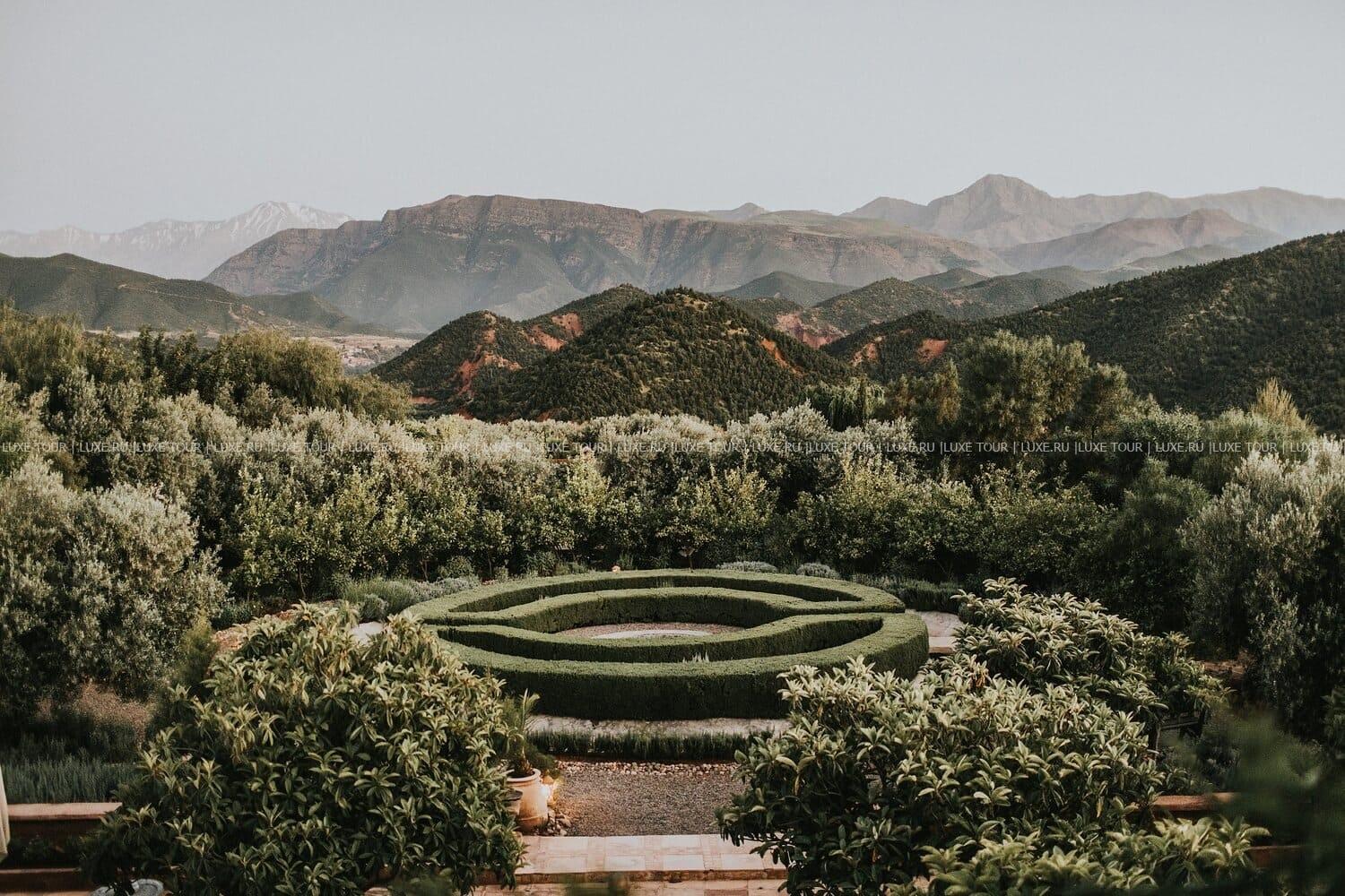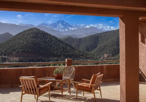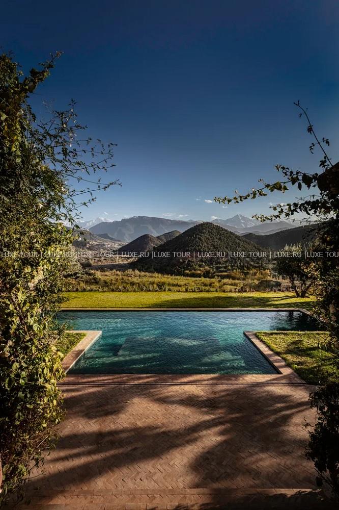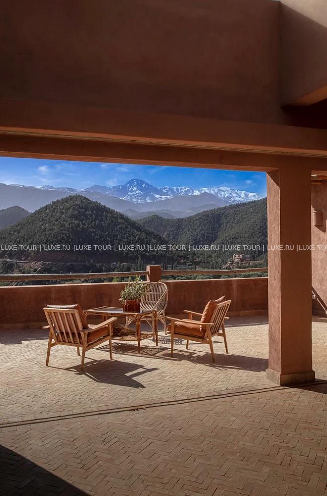 Отель расположен в Атласских горах, на вершине холма в долине Урика и всего в 38 км (примерно в 45 минутах езды) от международного аэропорта Марракеш-Менара.