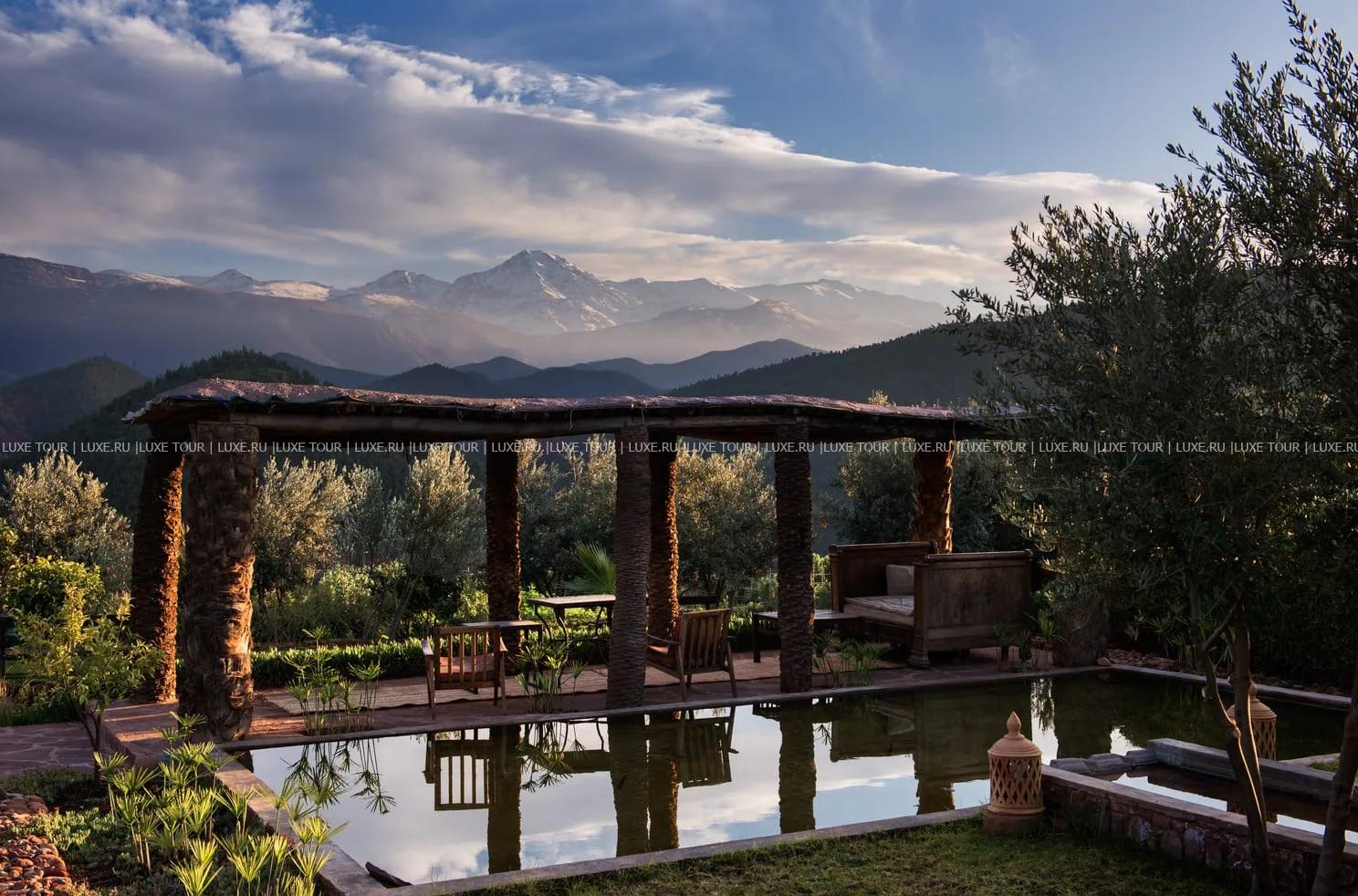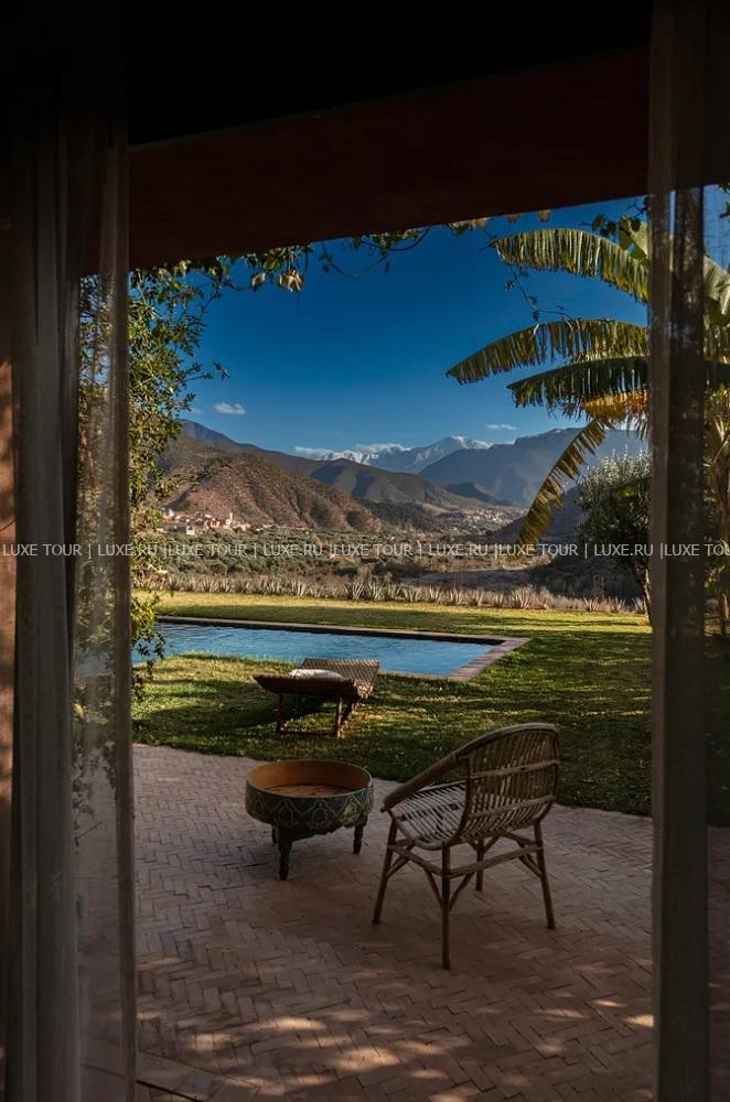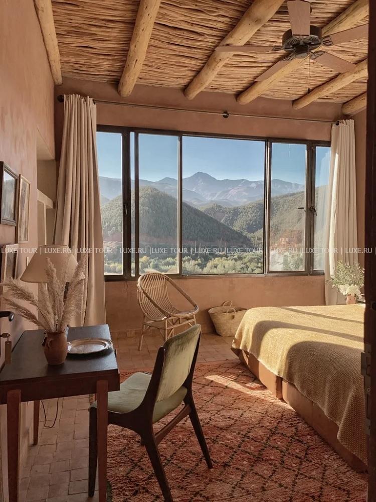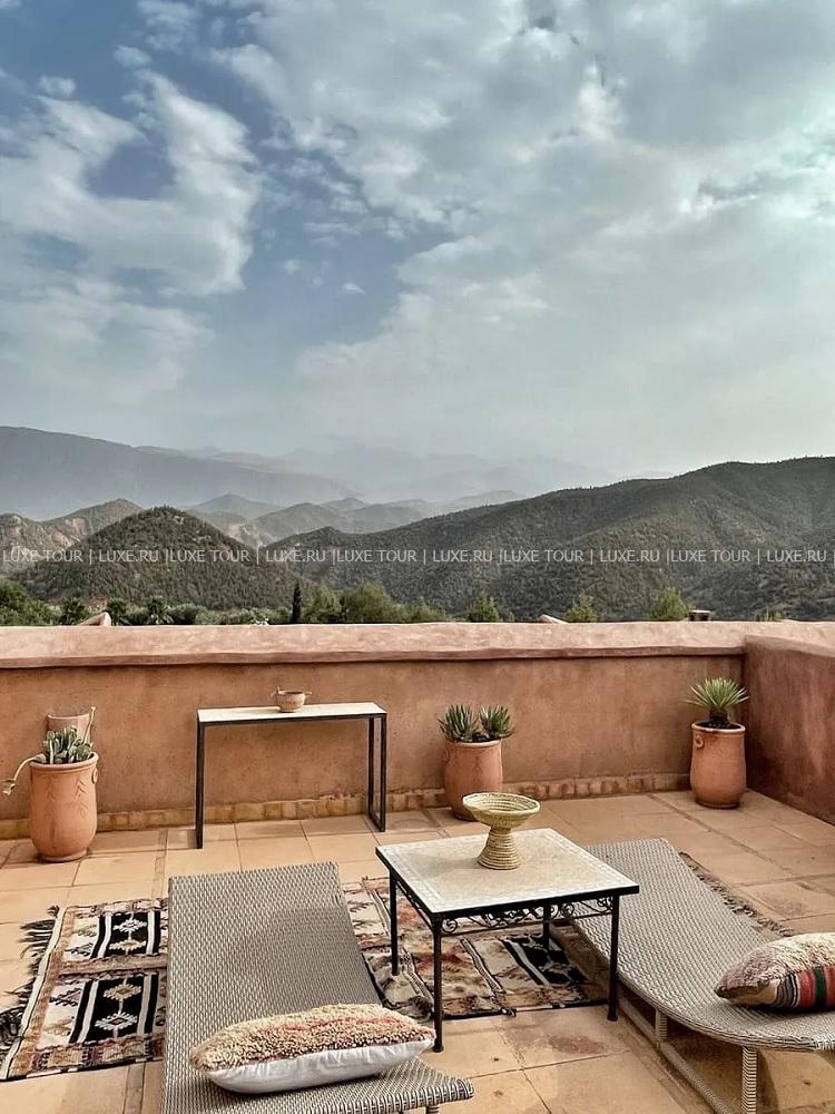 - Ресторан с уютным залом, патио, террасой с садом и чудесным видом на Атласские горы и долину Урика предлагает разнообразие блюд марокканской и интернациональной кухни, приготовленных из свежих сезонных продуктов. в том числе, из собственного сада отеля.